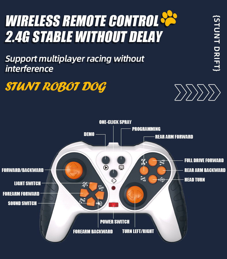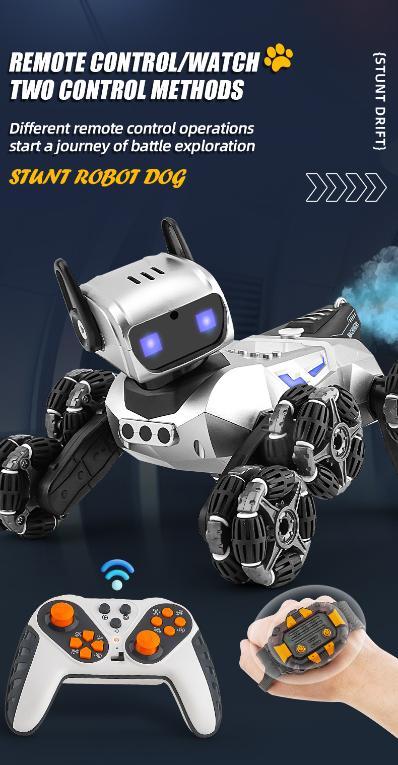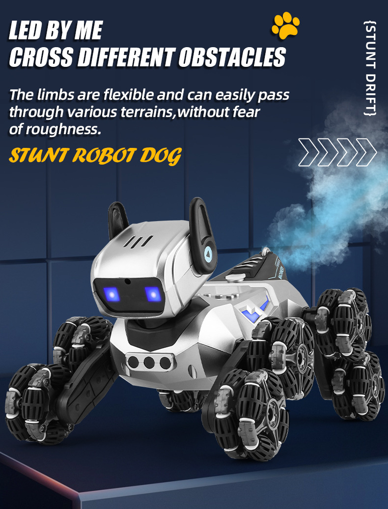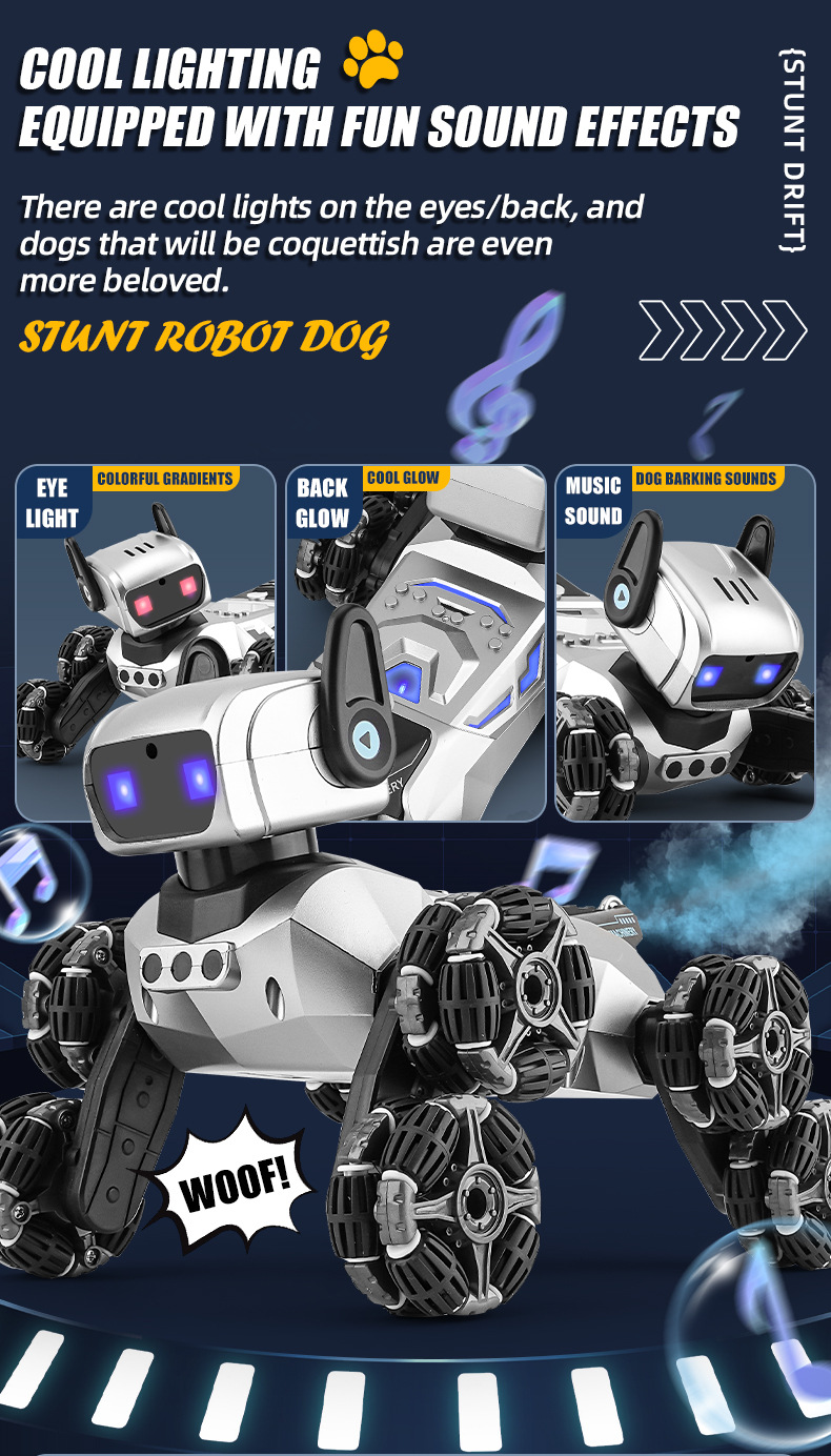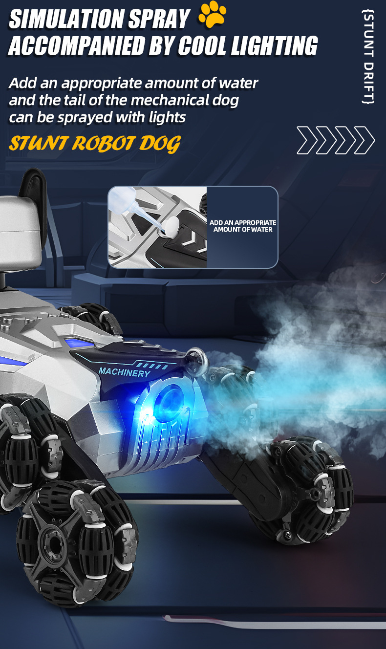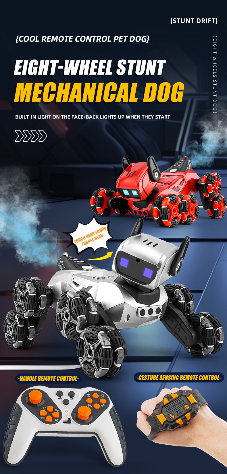 新款儿童玩具机械狗八轮特技喷雾可摇头电动遥控车机器狗