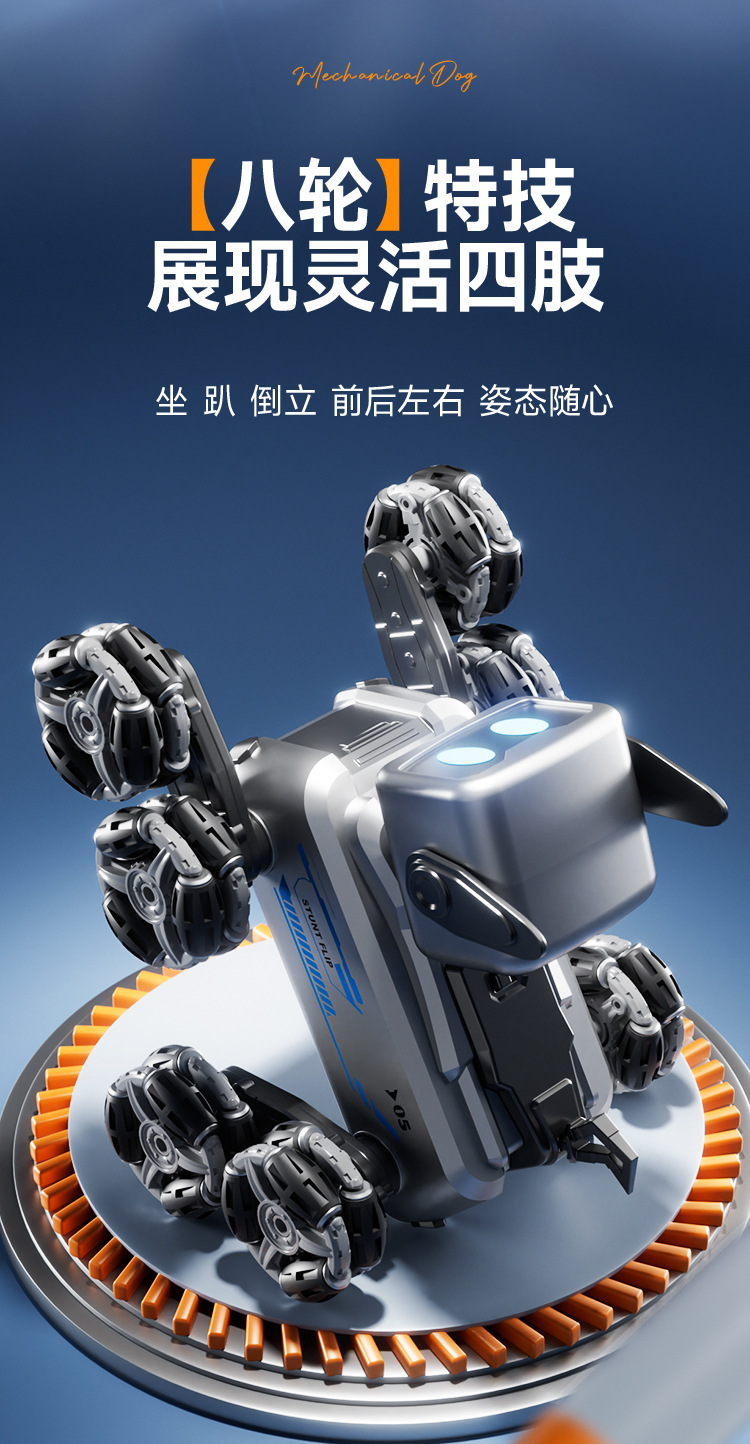 机械八轮机器狗手感应遥控四驱汽车电动机器人男女孩特技儿童玩具