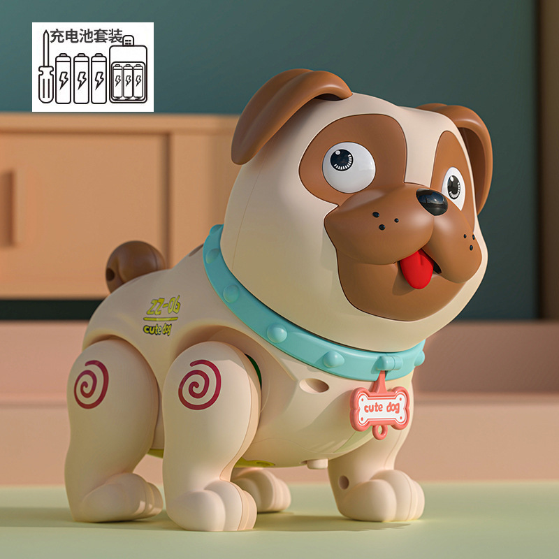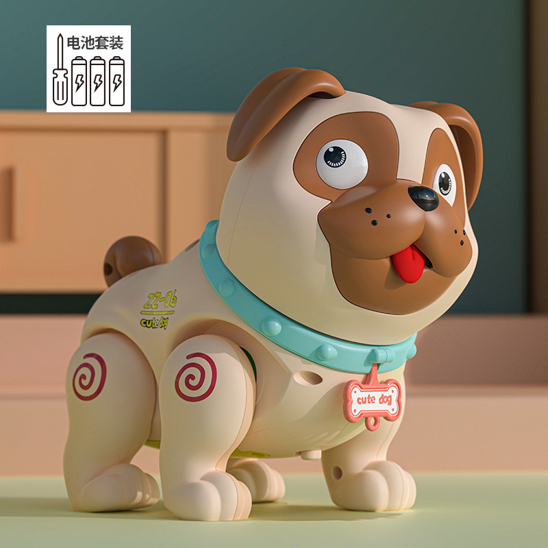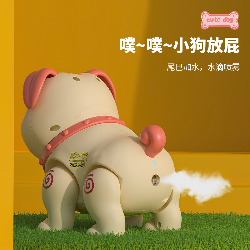电动机器狗仿真喷雾放屁灯光哈巴狗婴儿玩具0到6个月哄娃宠物狗
