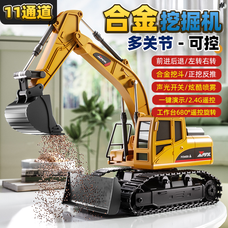 合金遥控挖掘机推土装卸翻斗车11通道充电动喷雾仿真工程儿童玩具