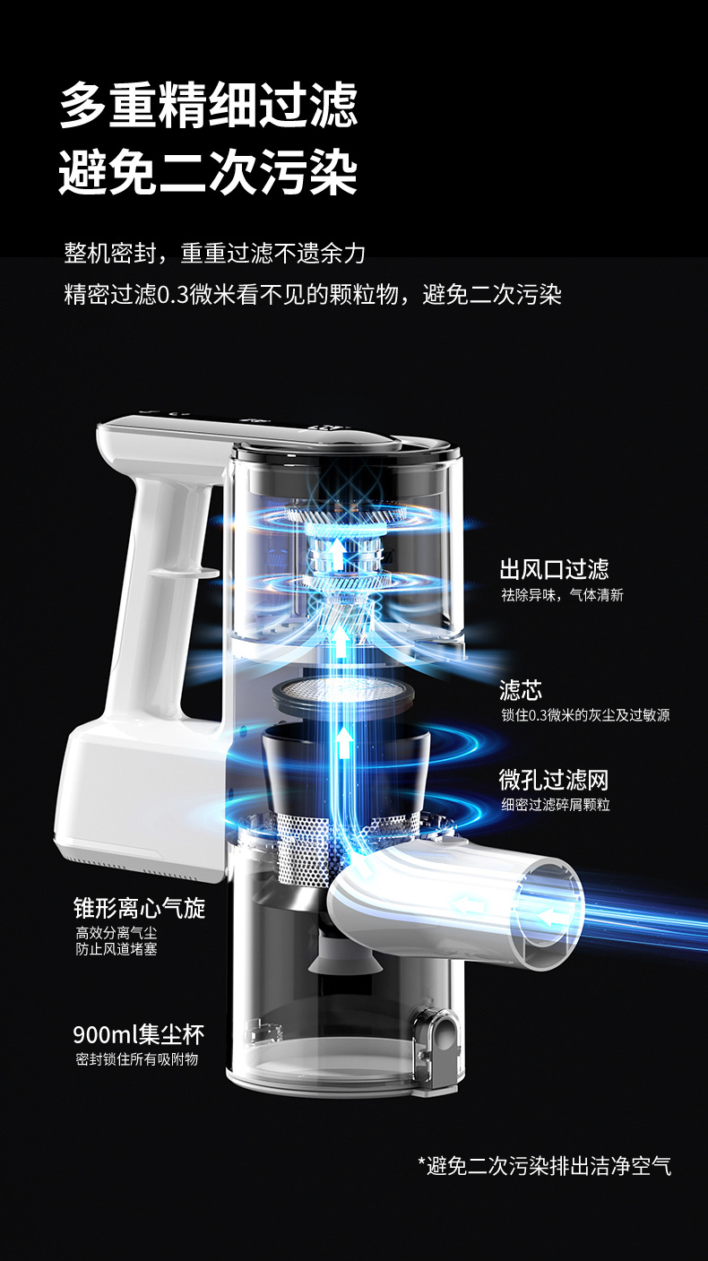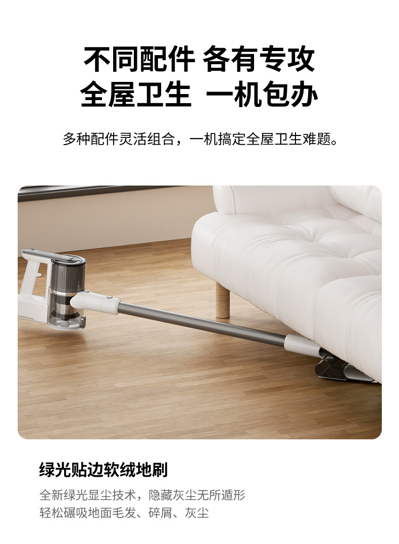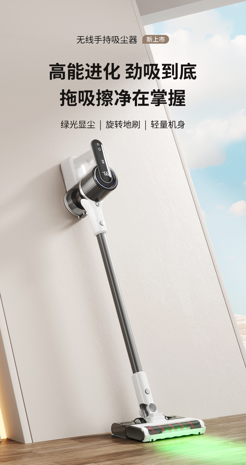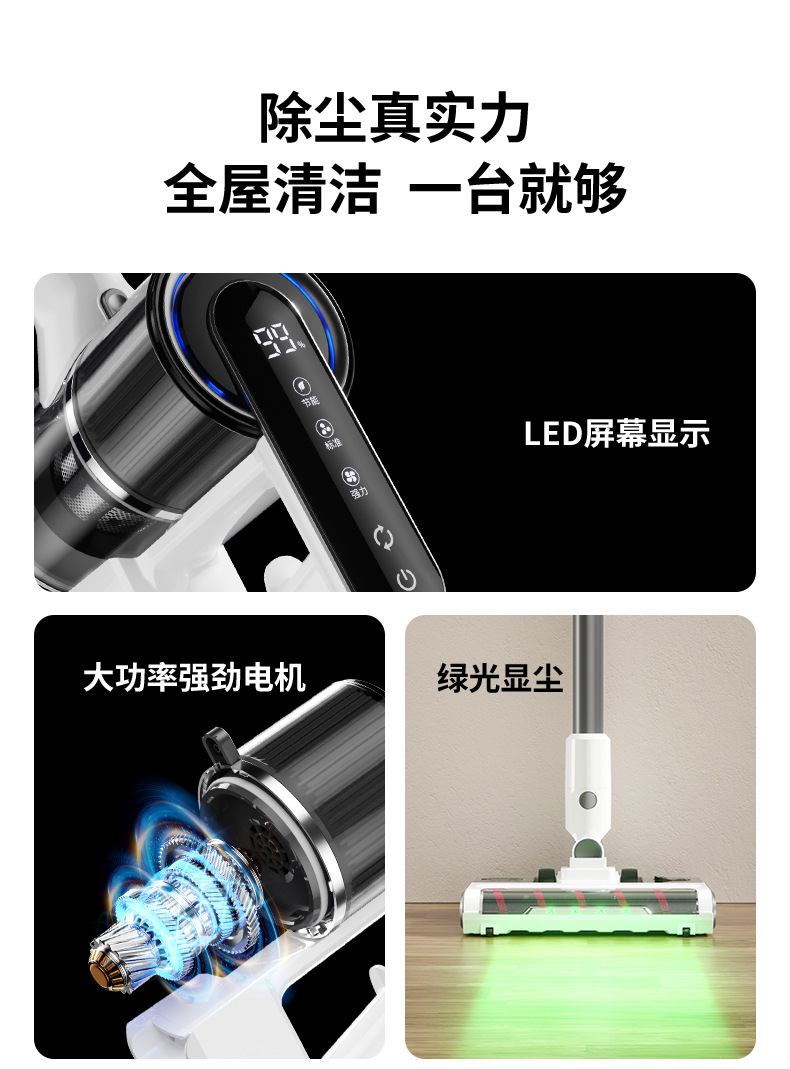 无线吸尘器家用大吸力绿光显尘手持吸尘机清洁地毯猫毛充电