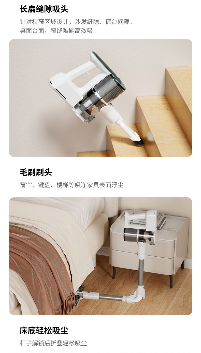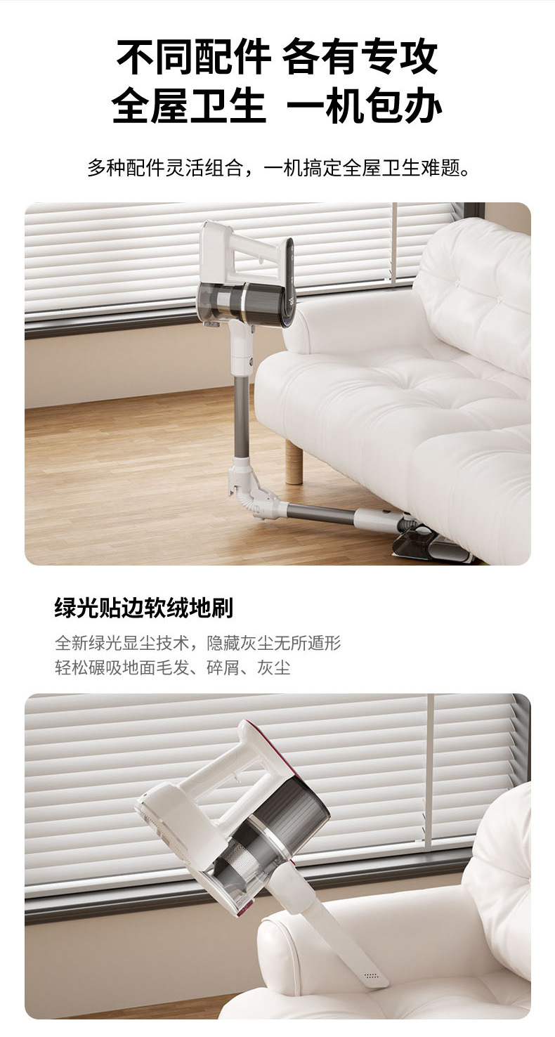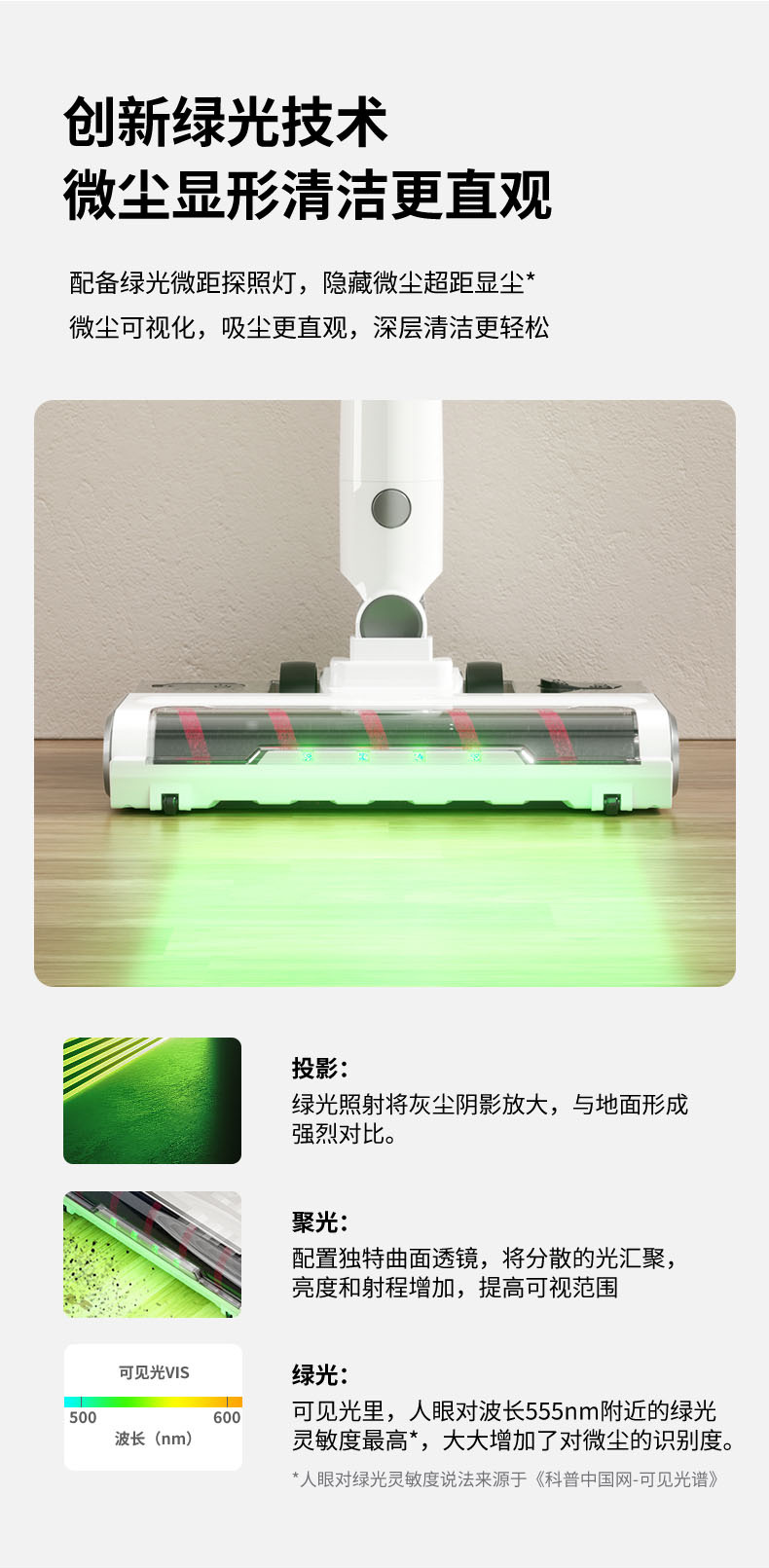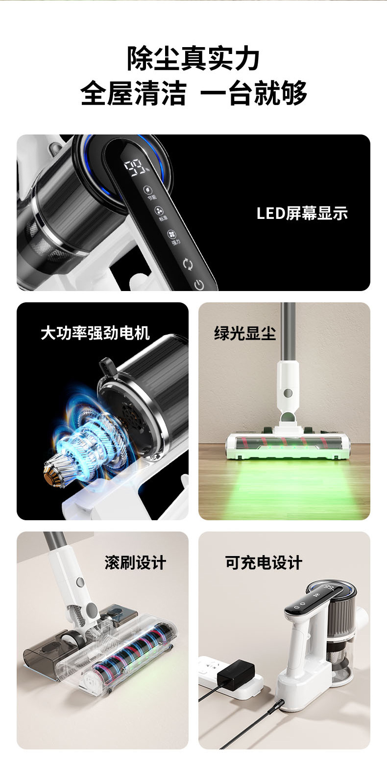 无线绿光显尘吸尘器可折叠吸拖一体滚刷家用地板大吸力除螨仪