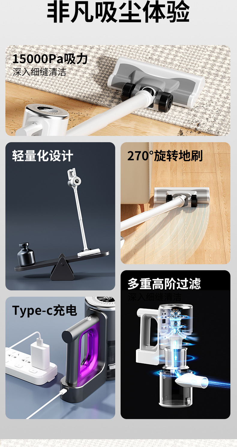 手持无线吸尘器家用强吸力吸拖一体干湿两用大吸力立式吸尘器