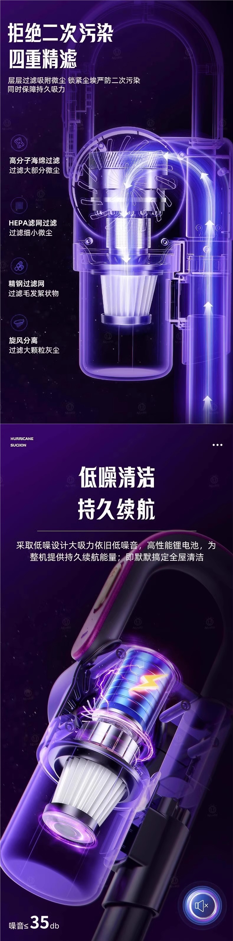 - 尊贵紫【豪华款+35000Pa大吸力】吸尘+长续航