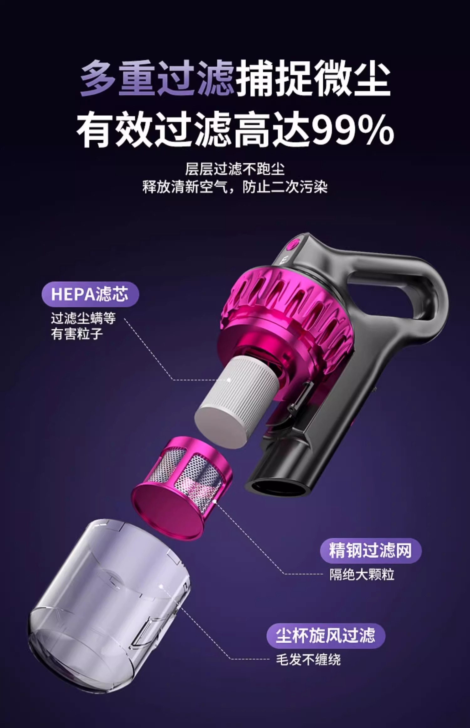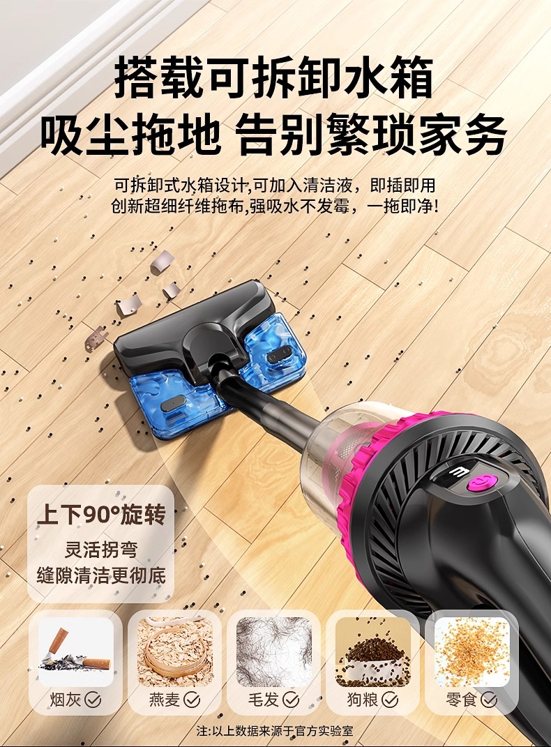 无线吸尘器大吸力家用手持小型车载车内用床上地毯吸拖一体机除螨