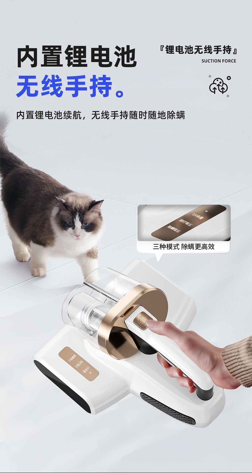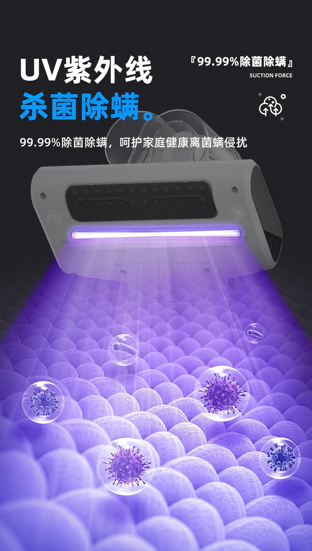 强力拍打无线除螨仪紫外线杀菌机家用沙发床铺清理虫猫毛吸尘神器
