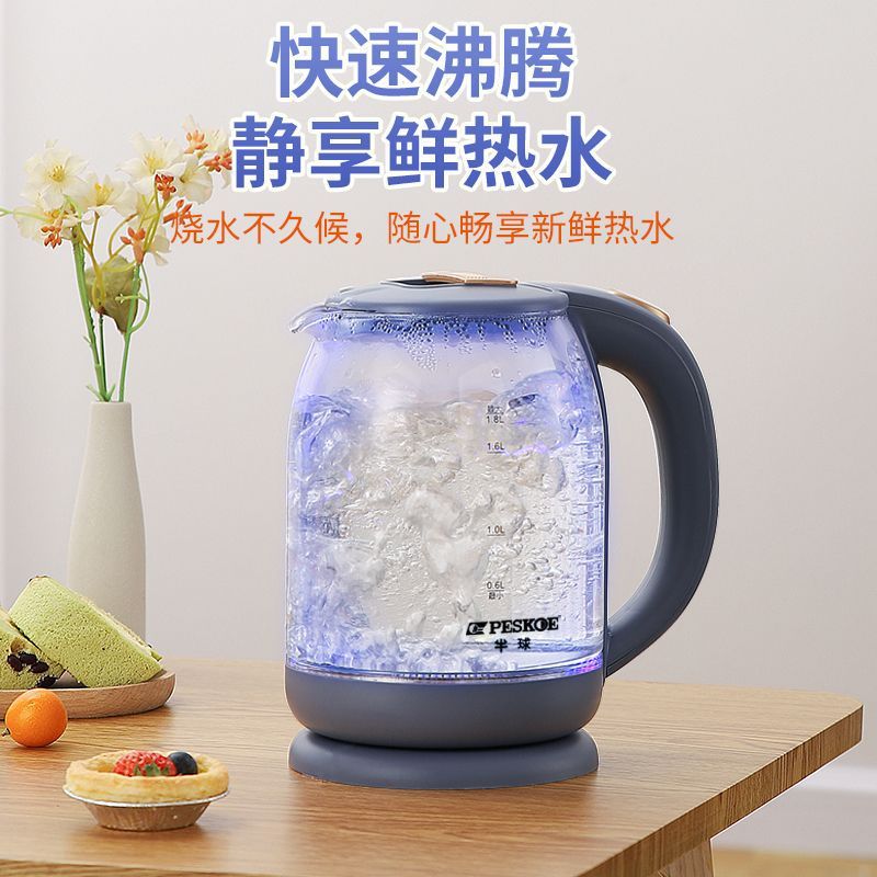 正半球烧水壶家用电热水壶蓝光玻璃煮茶壶自动断电大容量烧开水壶