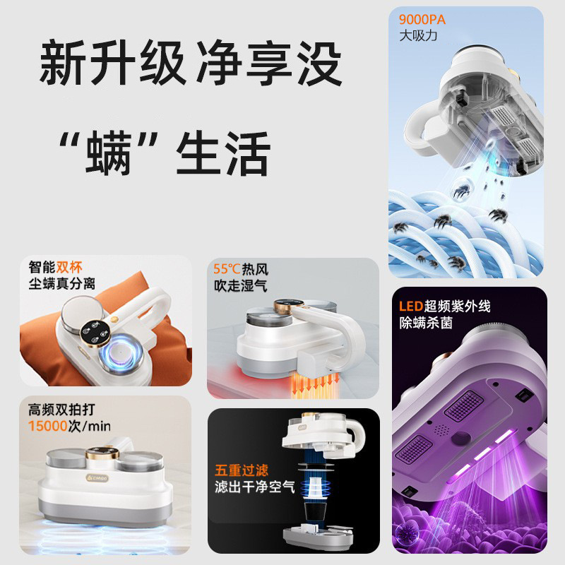 志高无线除螨仪家用功能显示手持大吸力紫外线杀菌去螨虫双拍打