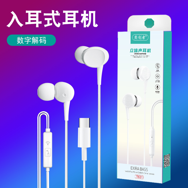 重低音有线耳机手机入耳式线控耳机适用华为type-c安卓耳机品牌