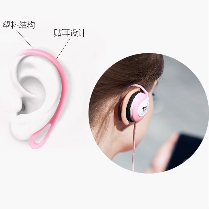 挂耳式耳机监听耳机圆孔通用重低音高清耳麦语音可爱线控运动电脑