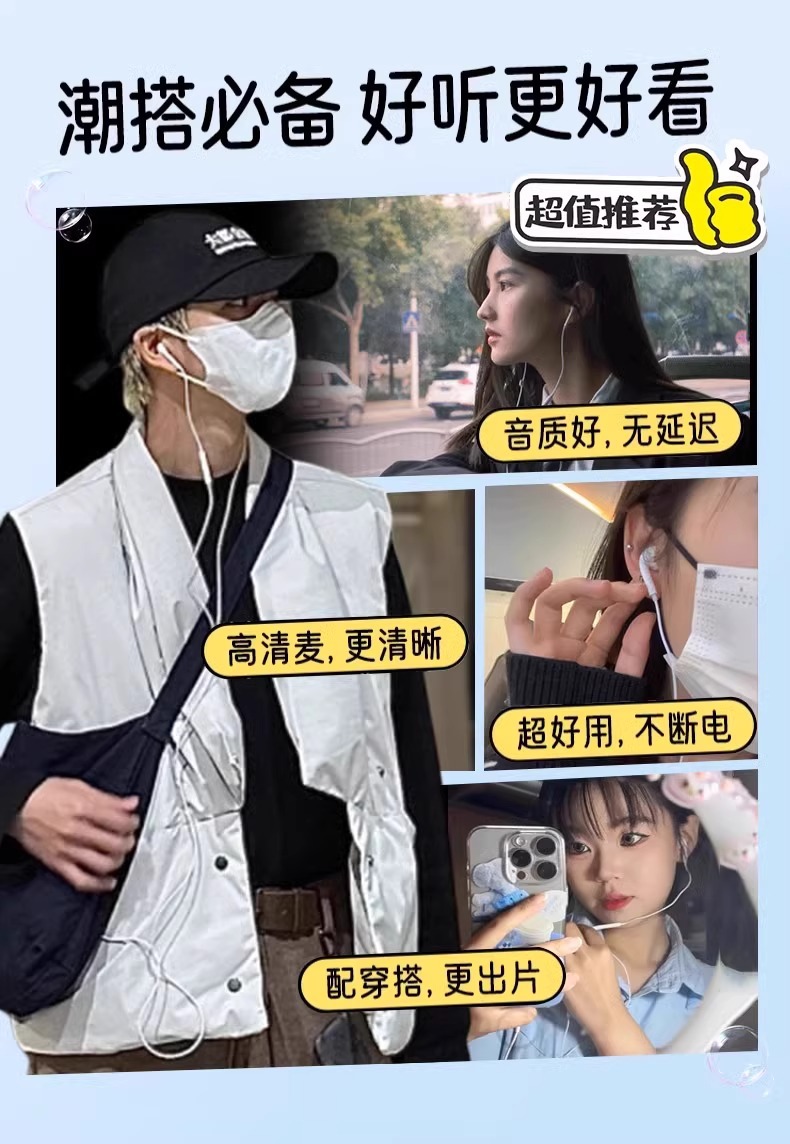 线耳机入耳式3.5mm与type-c的接口式可以适用于市面上大部分手机