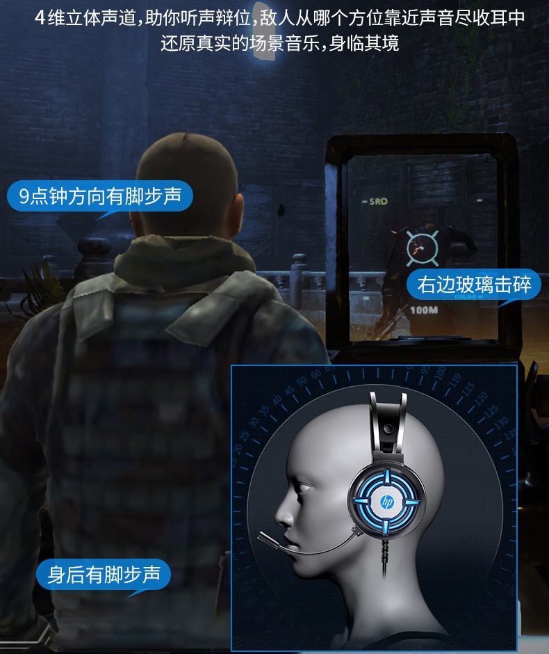 H120有线游戏电竞RGB发光吃鸡电脑头戴式7.1USB耳机耳麦来酷405