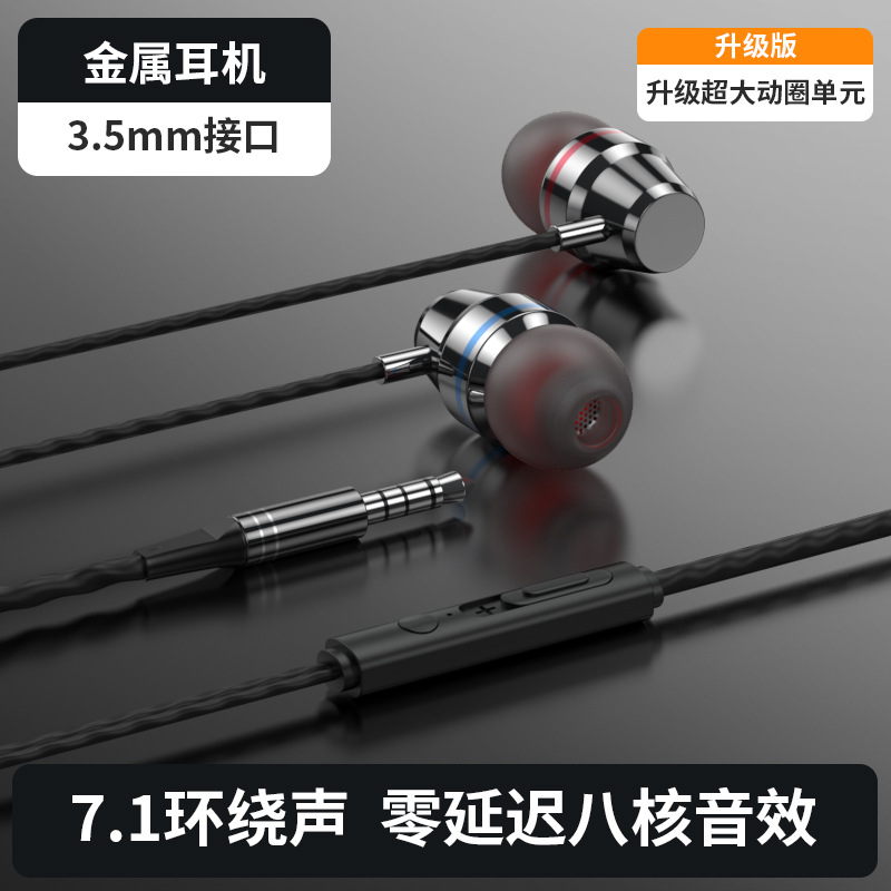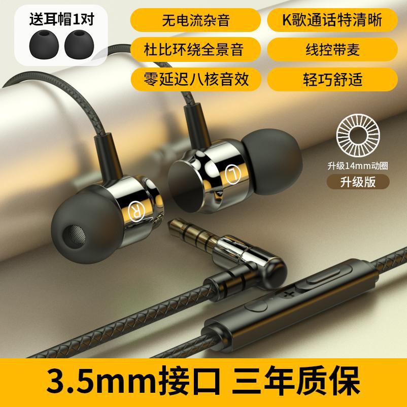 - 升级款黑色【3.5mm圆口】线控带麦★超强重低音★超大动圈★八核HIFI音效
