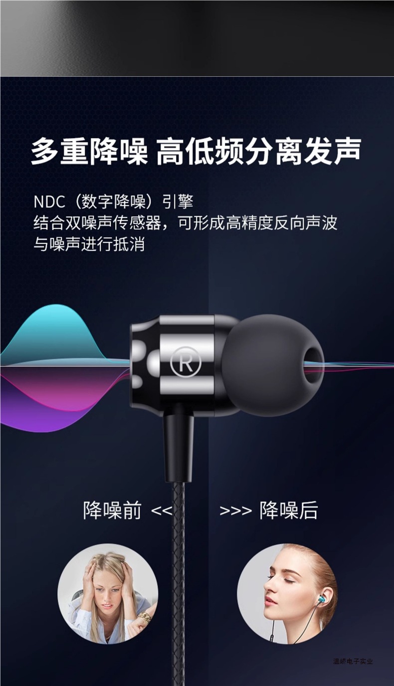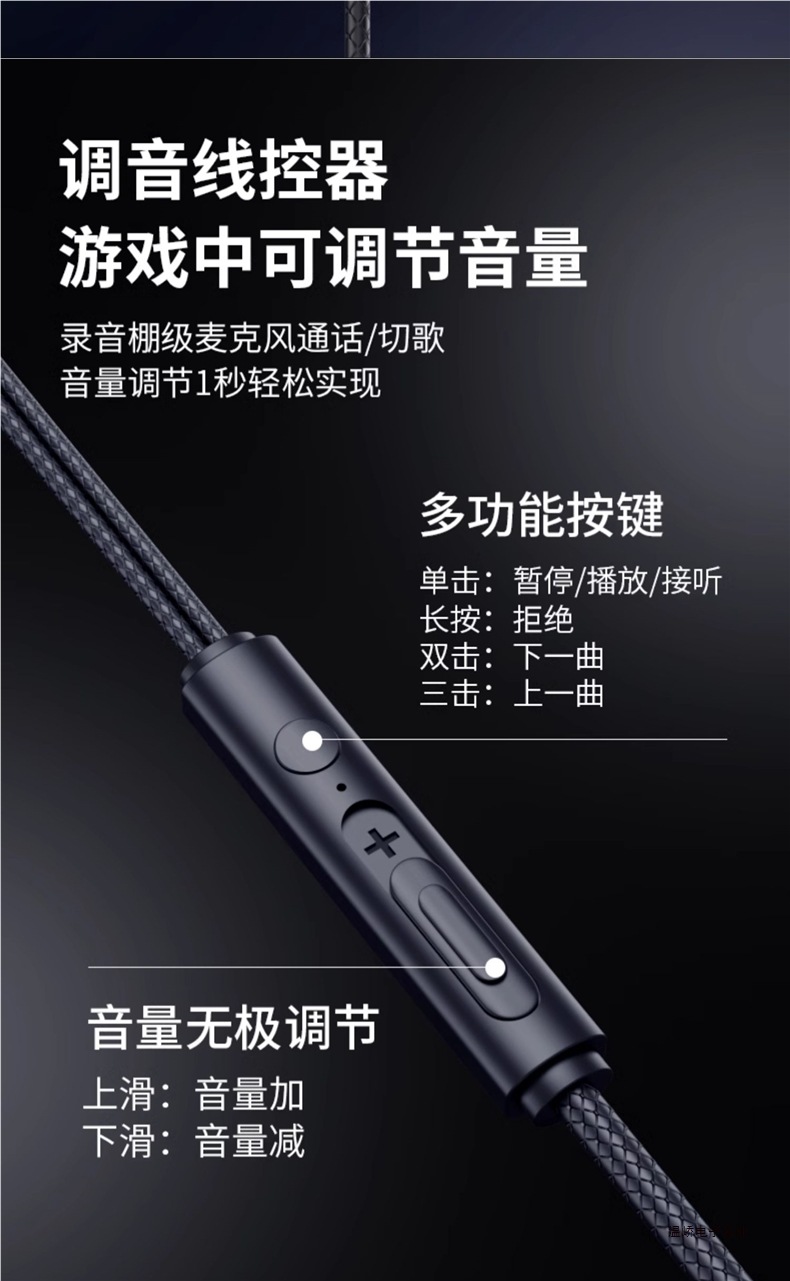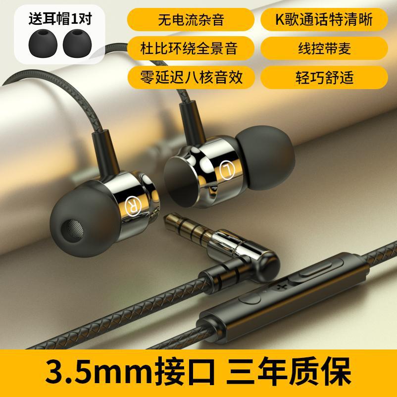 - 黑色【3.5mm圆头】线控带麦★超强重低音★八核HIFI音效