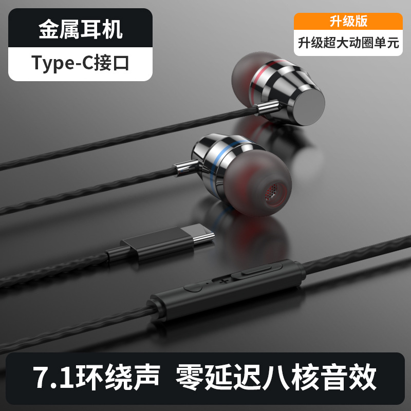 - 升级款黑色【Type-C扁口】线控带麦★超强重低音★超大动圈★八核HIFI音效