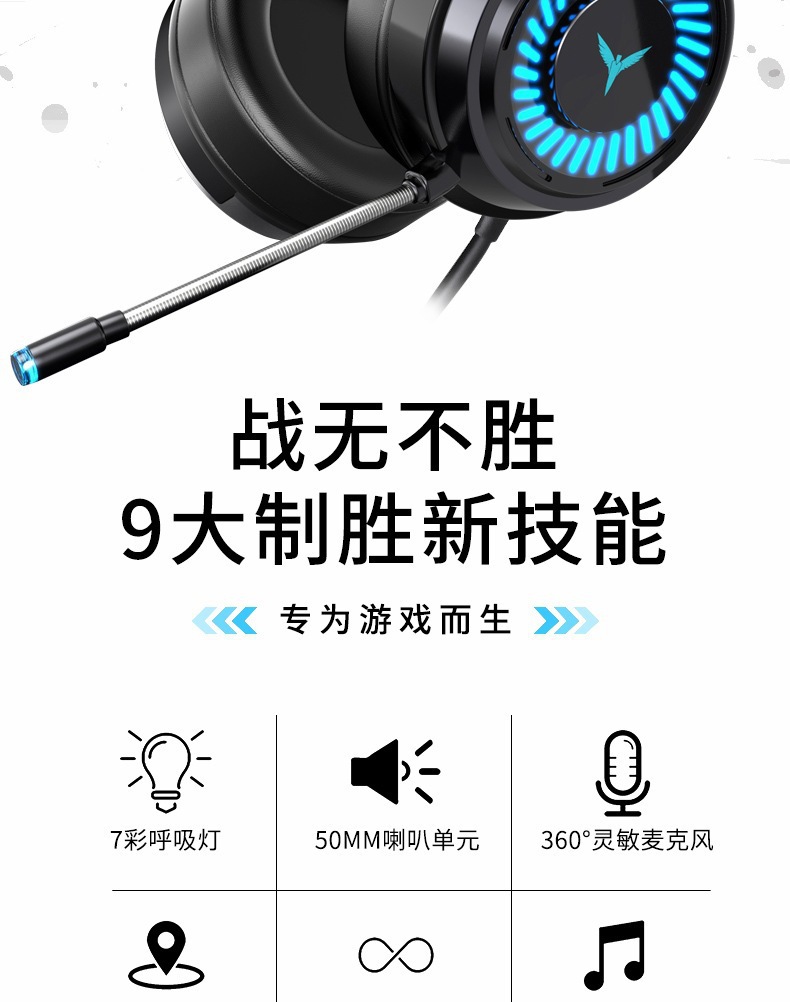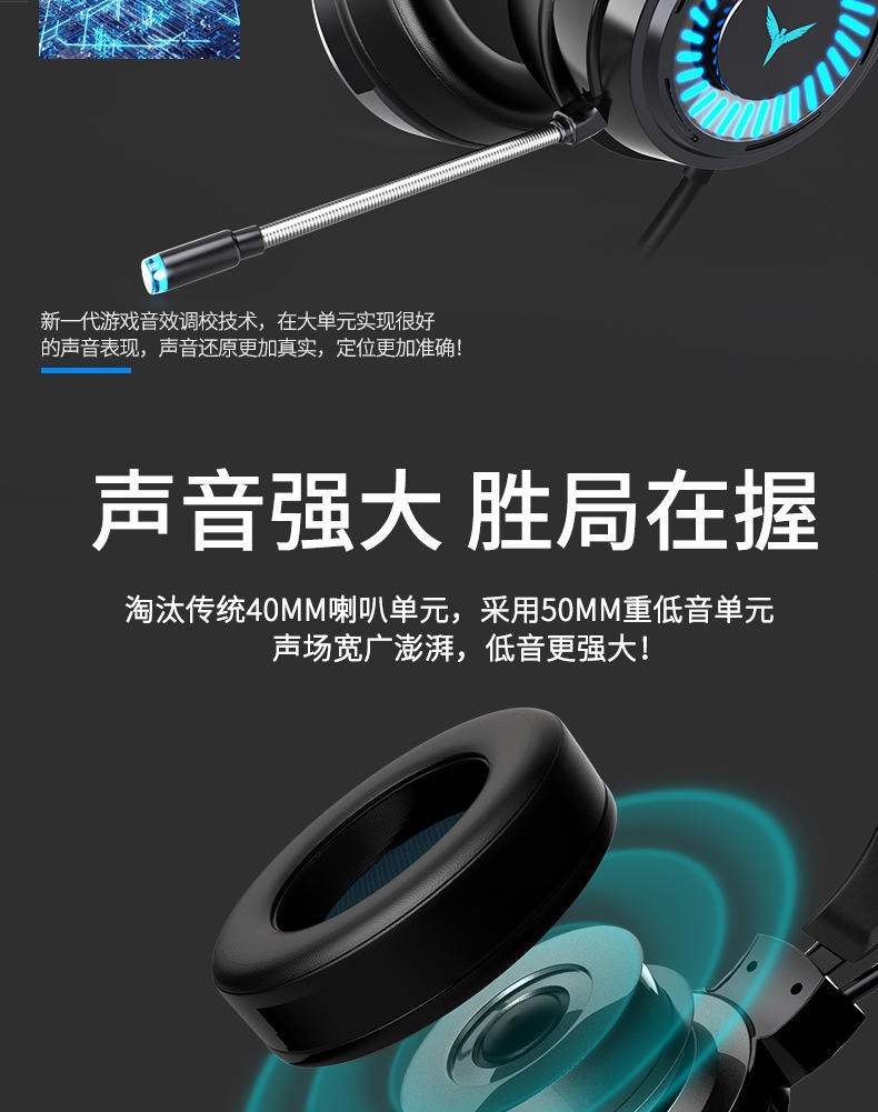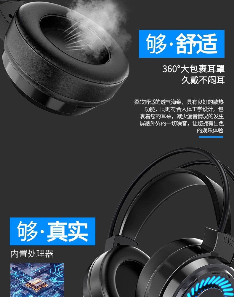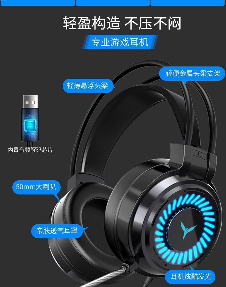 柏战G60游戏头戴式耳机电竞7.1USB吃鸡耳机电脑笔记本耳麦