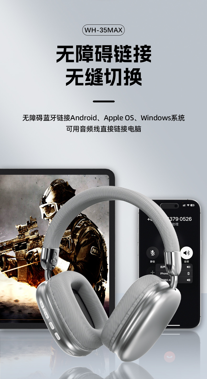 新款WH35Max头戴式耳机电镀简约无线超长续航蓝牙耳机