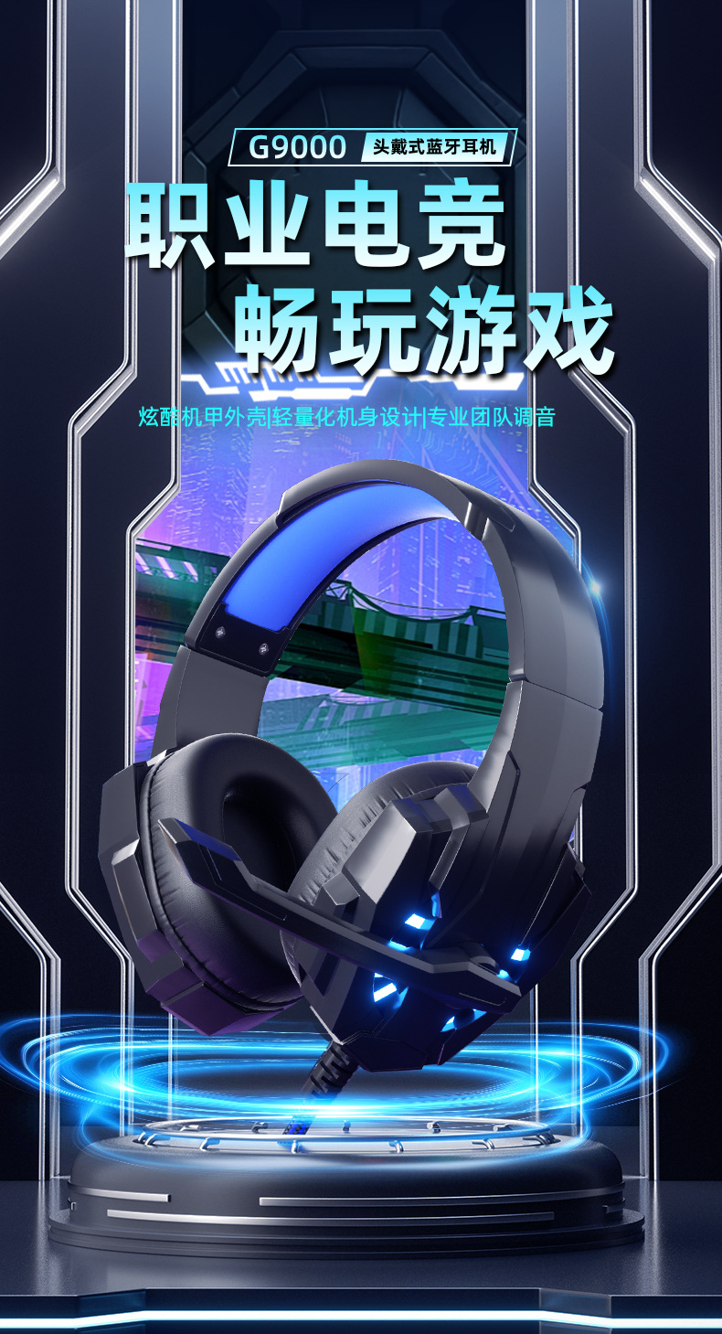 爆款G9000头戴式耳机RGB发光电竞游戏台式电脑有线耳机