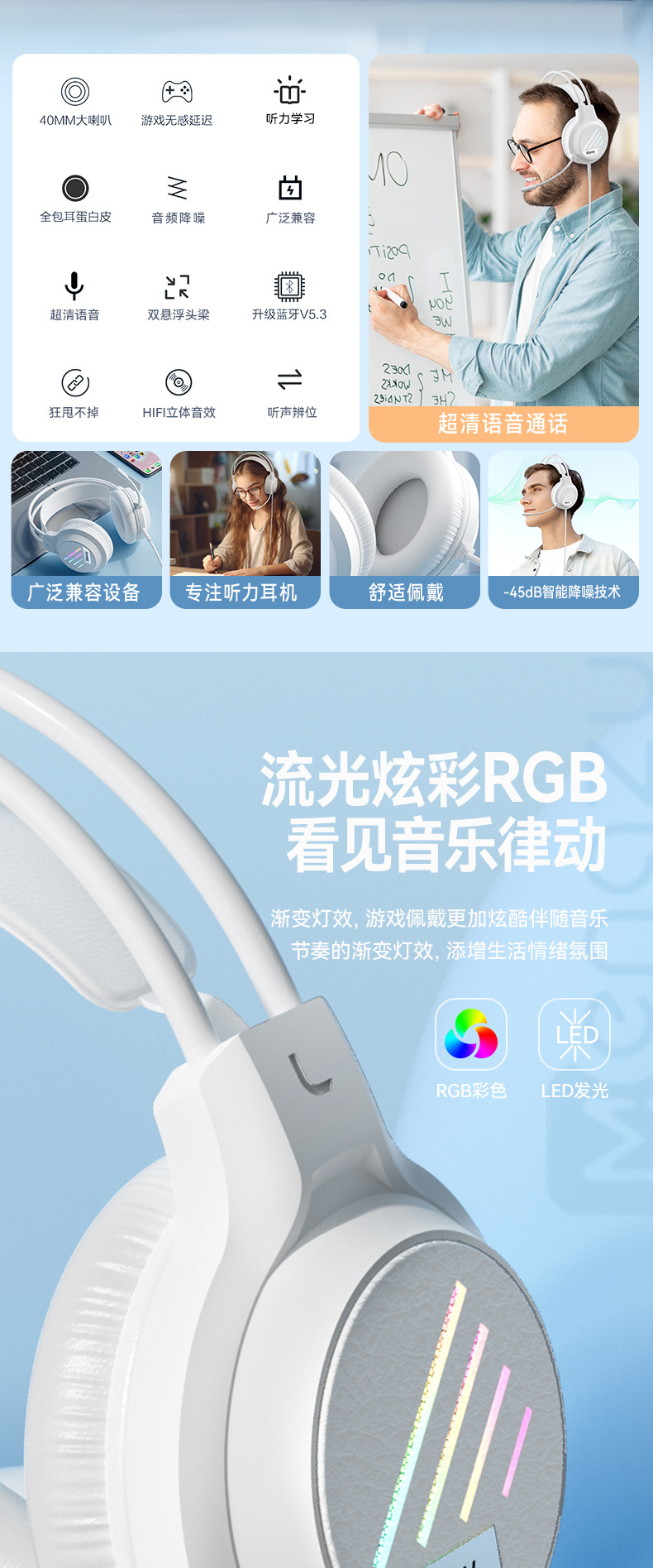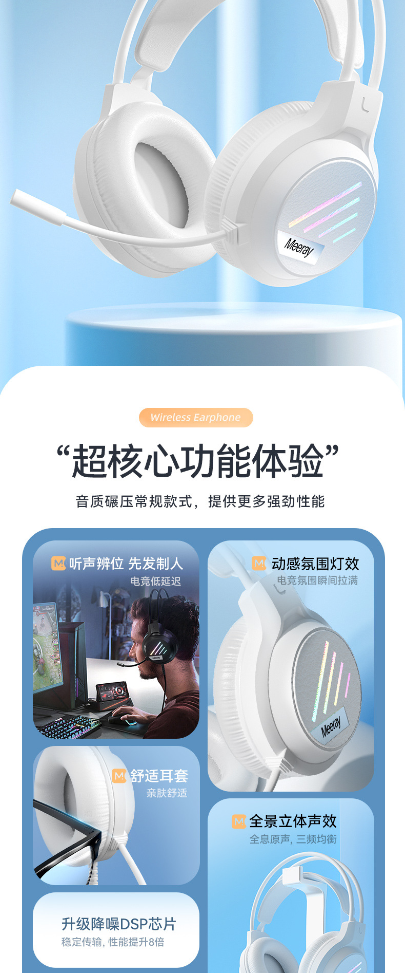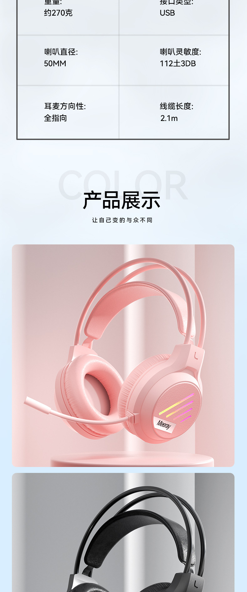 - 粉色【有光版】双插3.5mm+usb接口发光