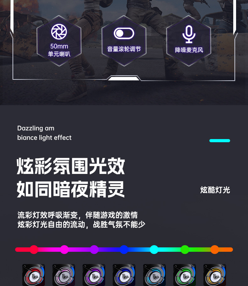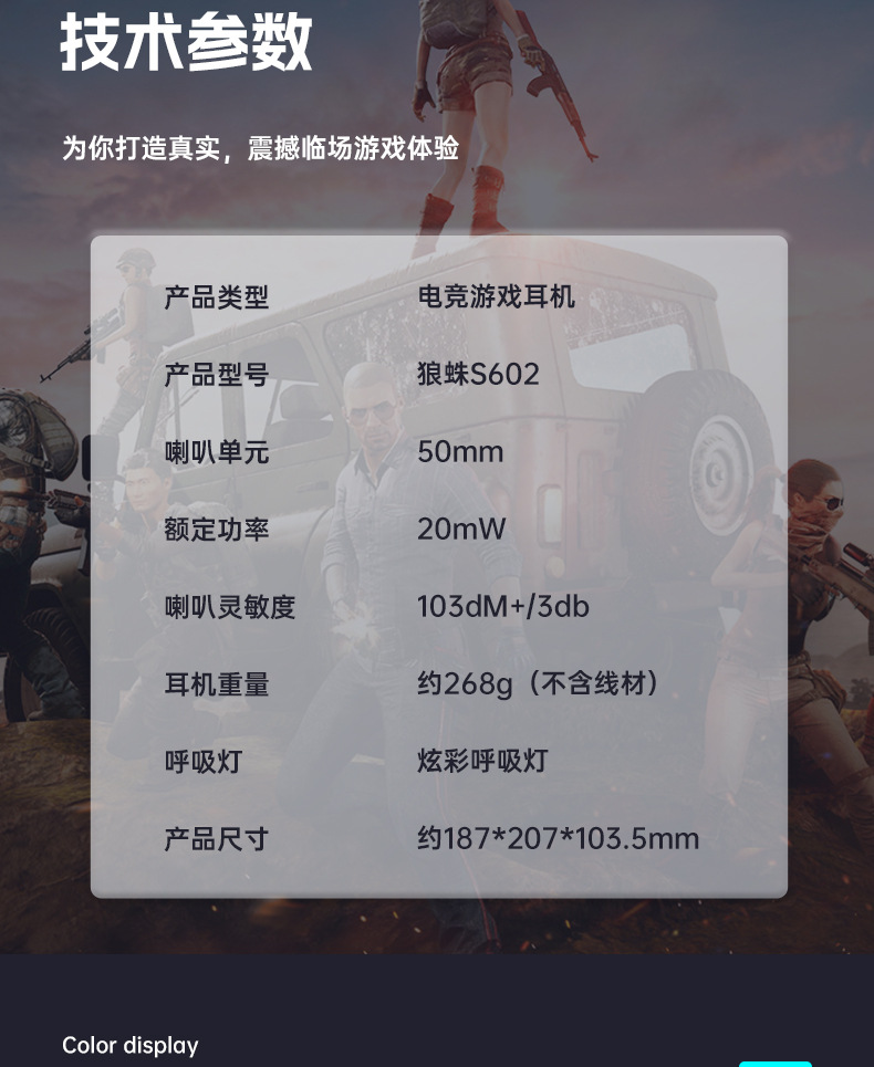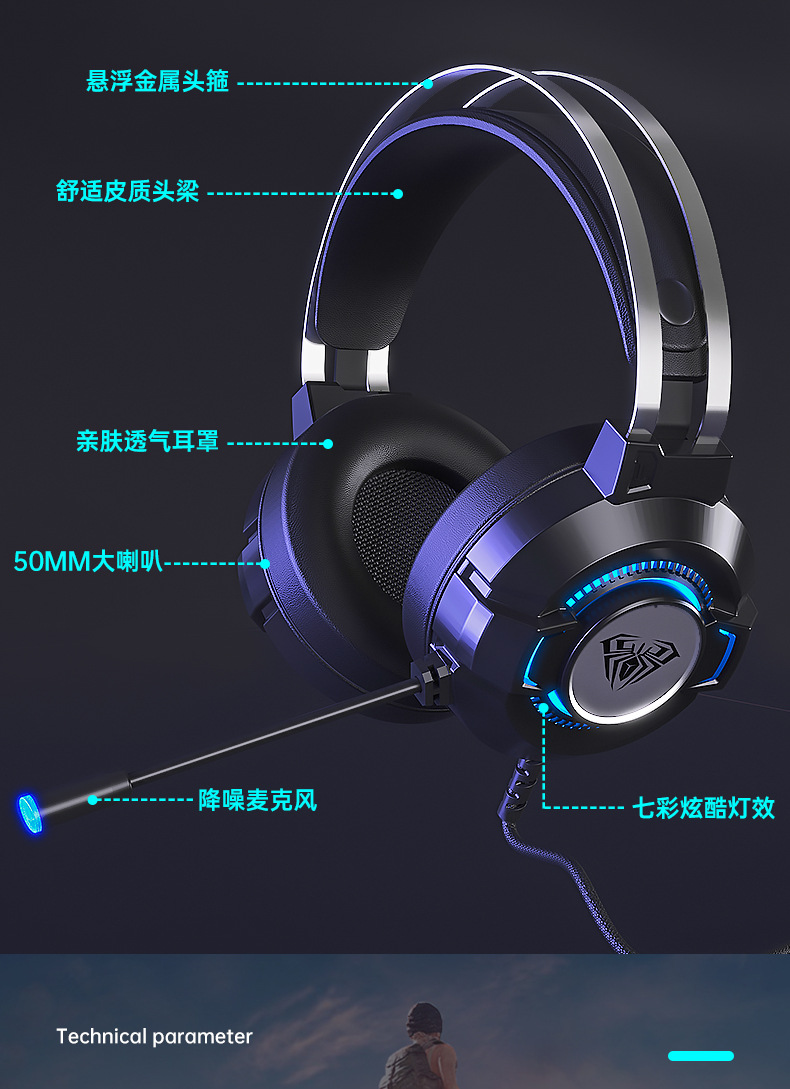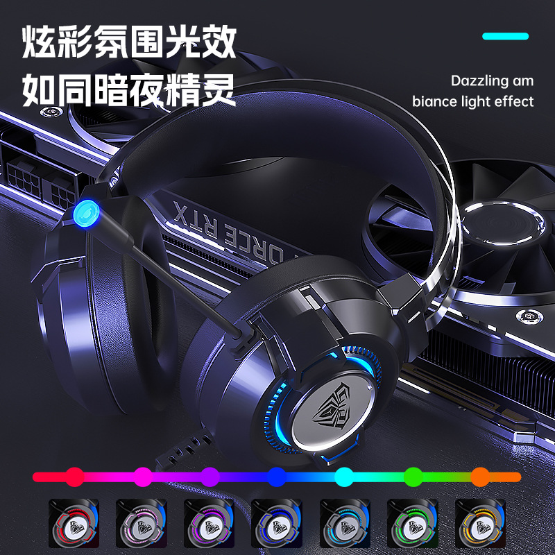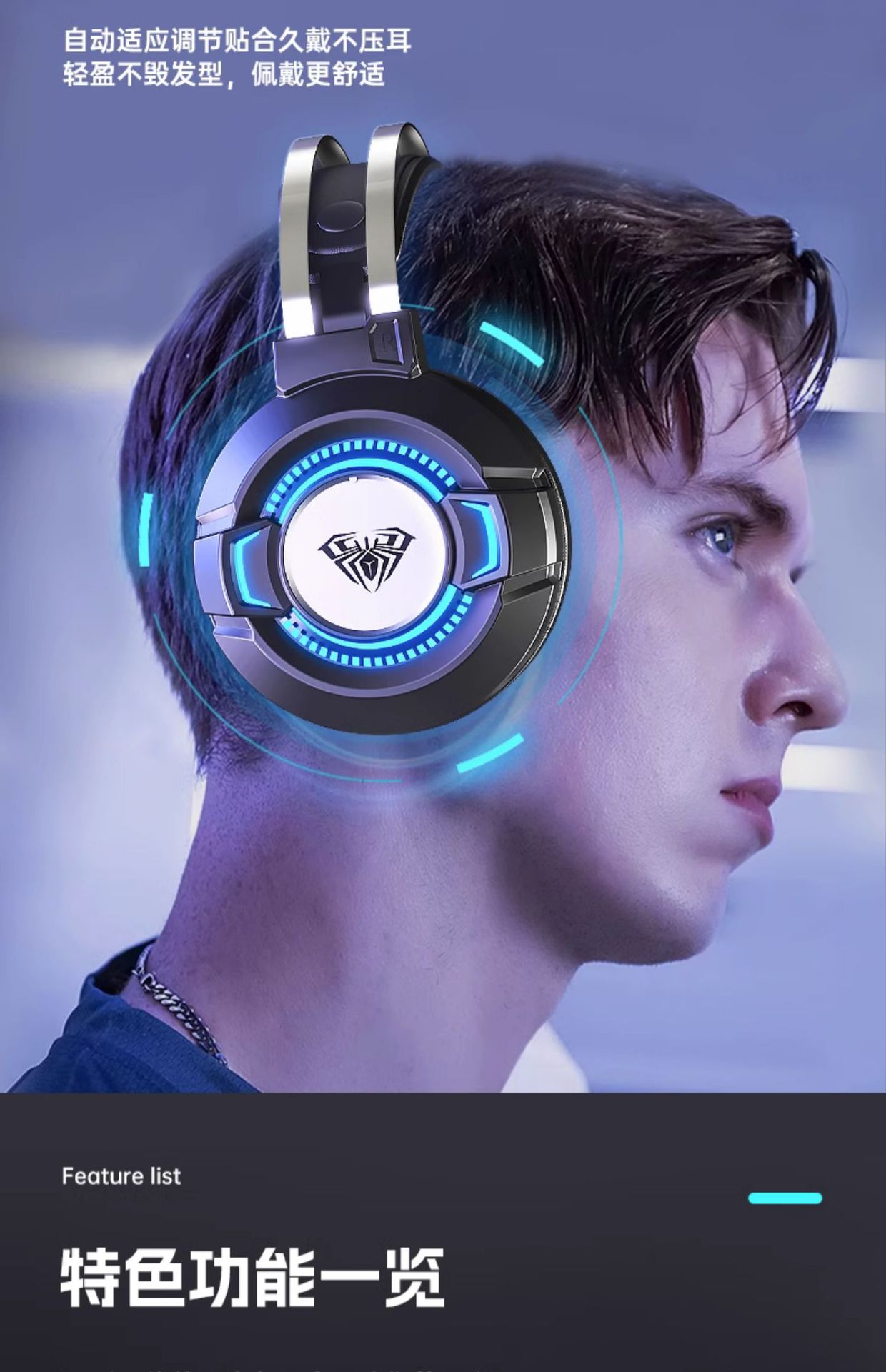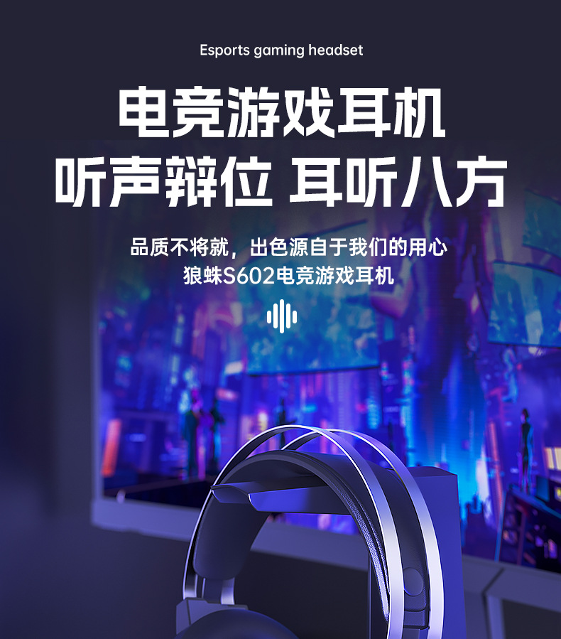 AULA/狼蛛S602头戴式7.1声道电竞游戏吃鸡耳机有线台式电脑耳麦网