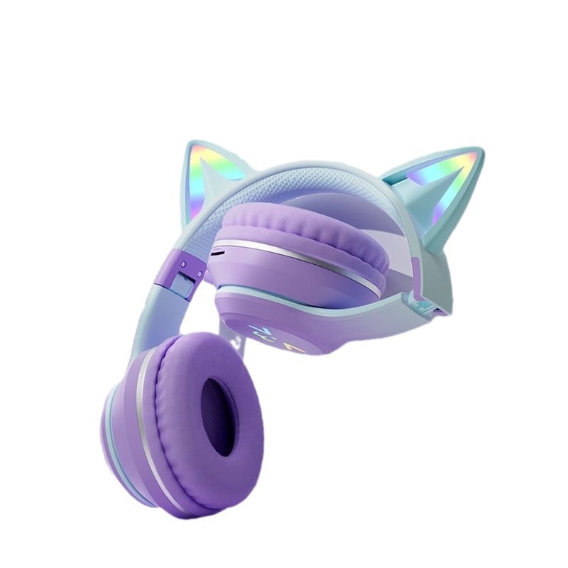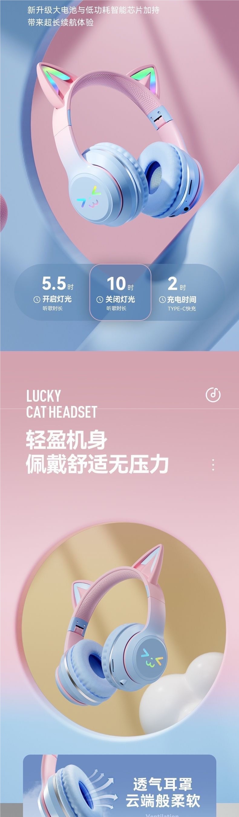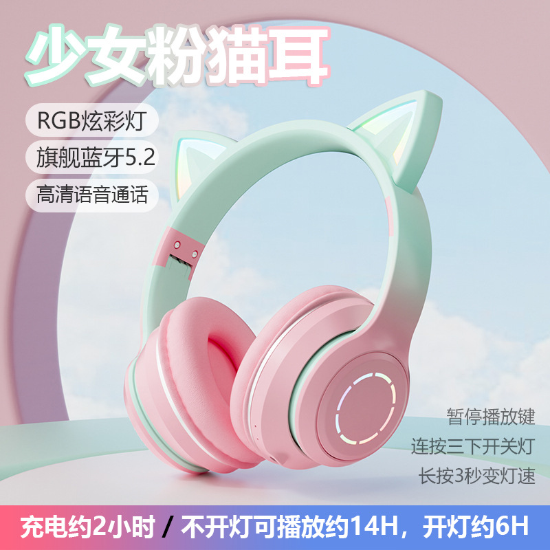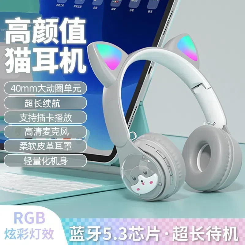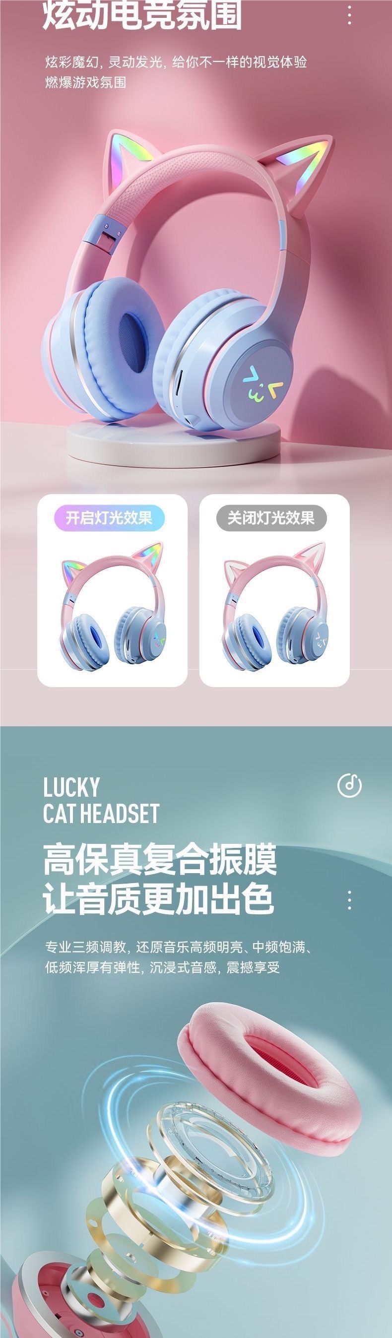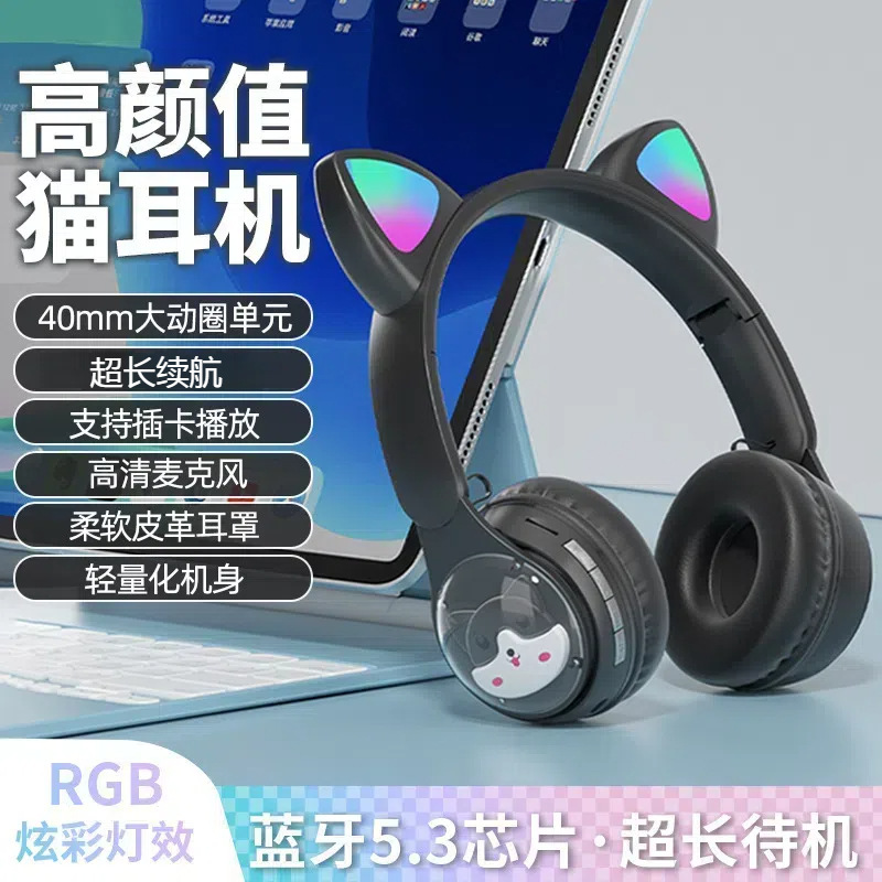发光猫咪耳朵蓝牙耳机头戴式立体音高颜值无线电竞游戏听歌学习课
