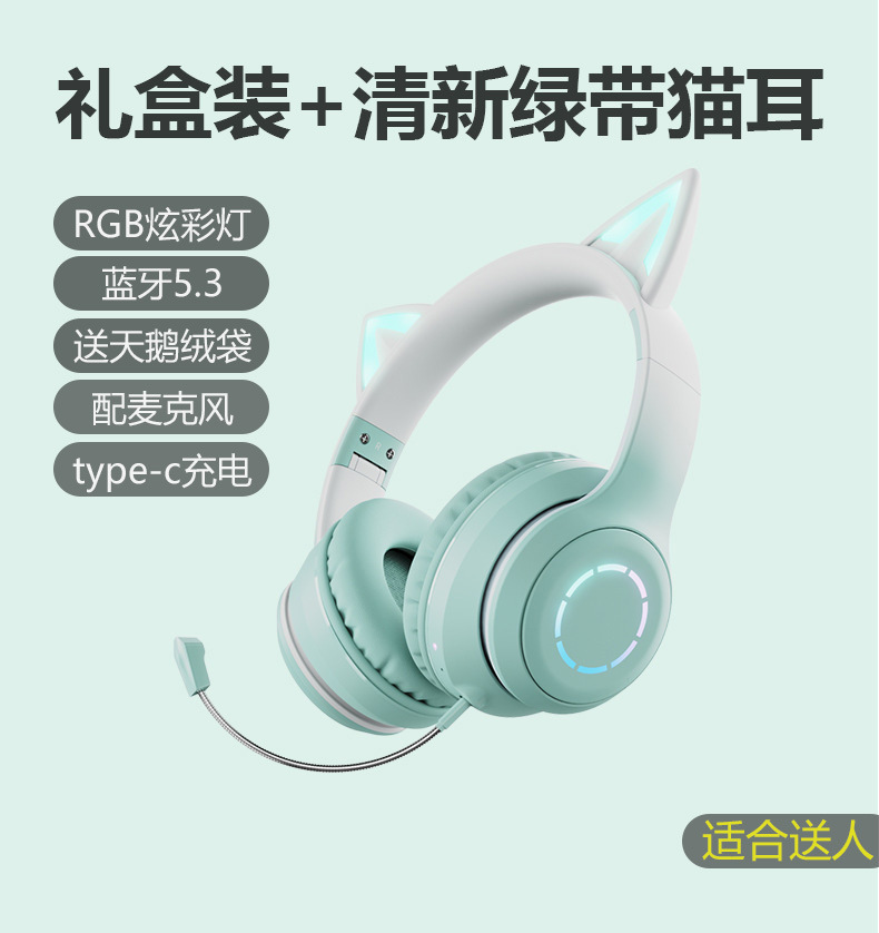 - 标配-礼盒装+清新绿带猫耳(★蓝牙5.3★type-c接口★送天鹅绒袋★送麦克风)