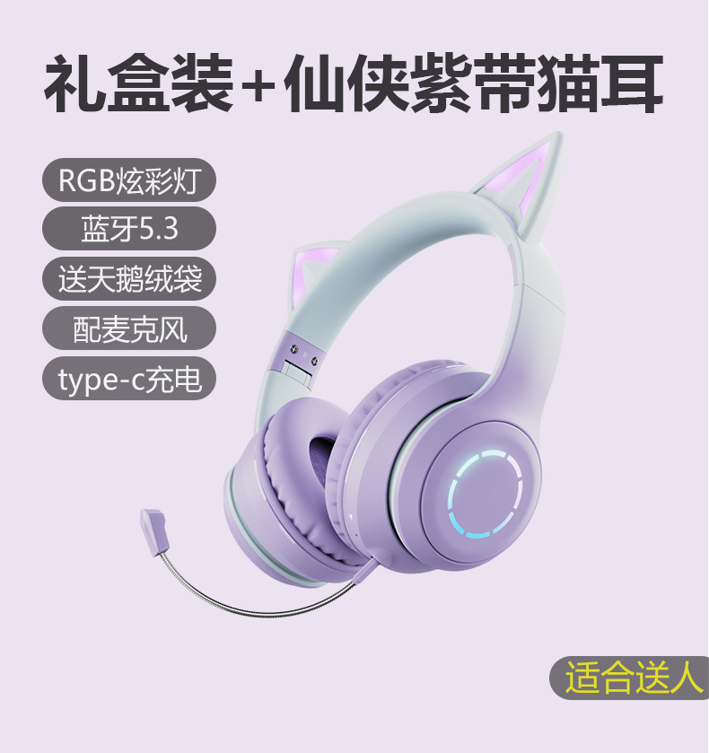 - 标配-礼盒装+仙侠紫带猫耳(★蓝牙5.3★type-c接口★送天鹅绒袋★送麦克风)