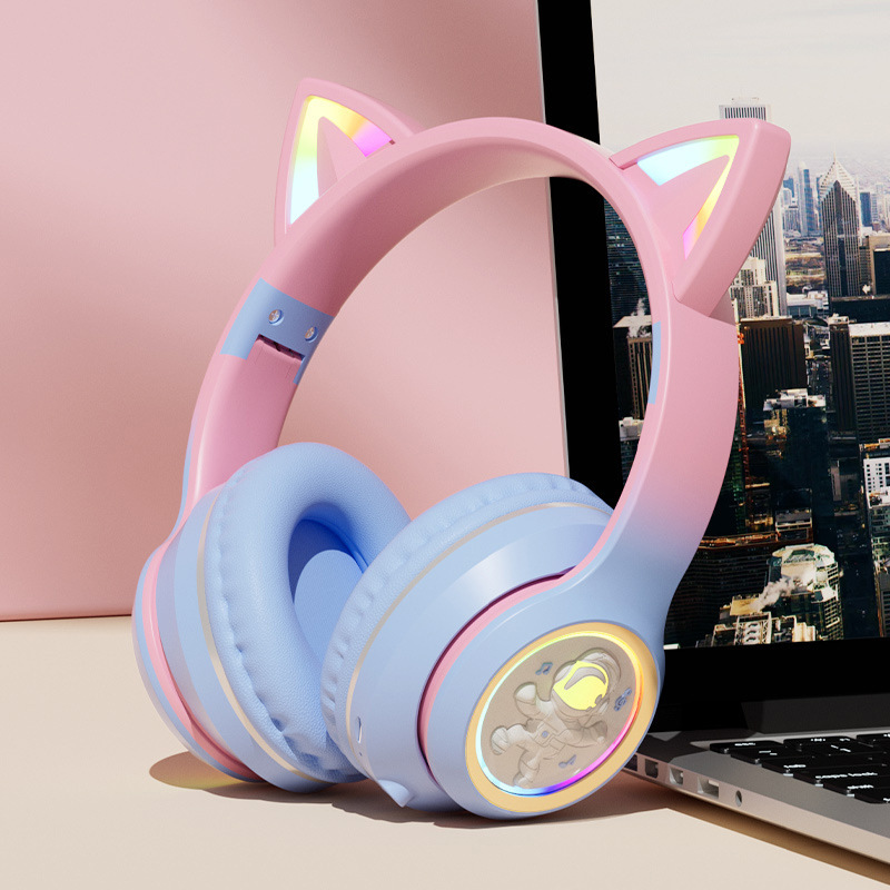 - 标配-航天员渐变粉带猫耳【高清语音通话】★流光RGB酷灯★送充电线+音频线