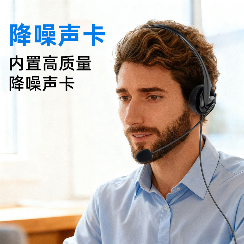 2025新款话务耳机通话降噪办公客服USB电脑头戴式有线耳机