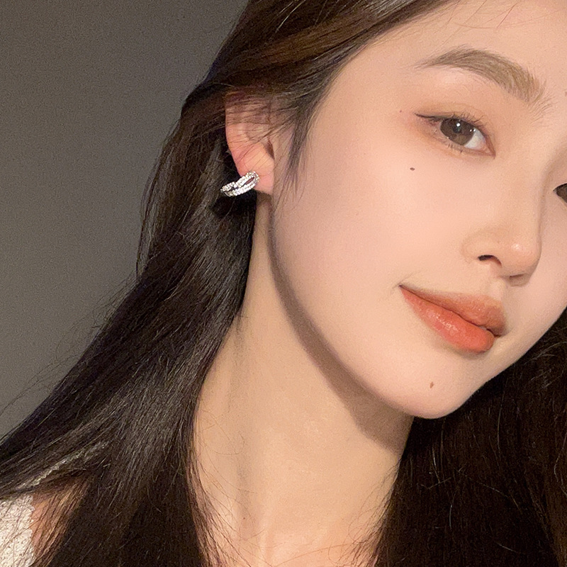 小众设计感镶钻双层交叉锆石耳钉气质轻奢高级感耳环简约百搭耳饰