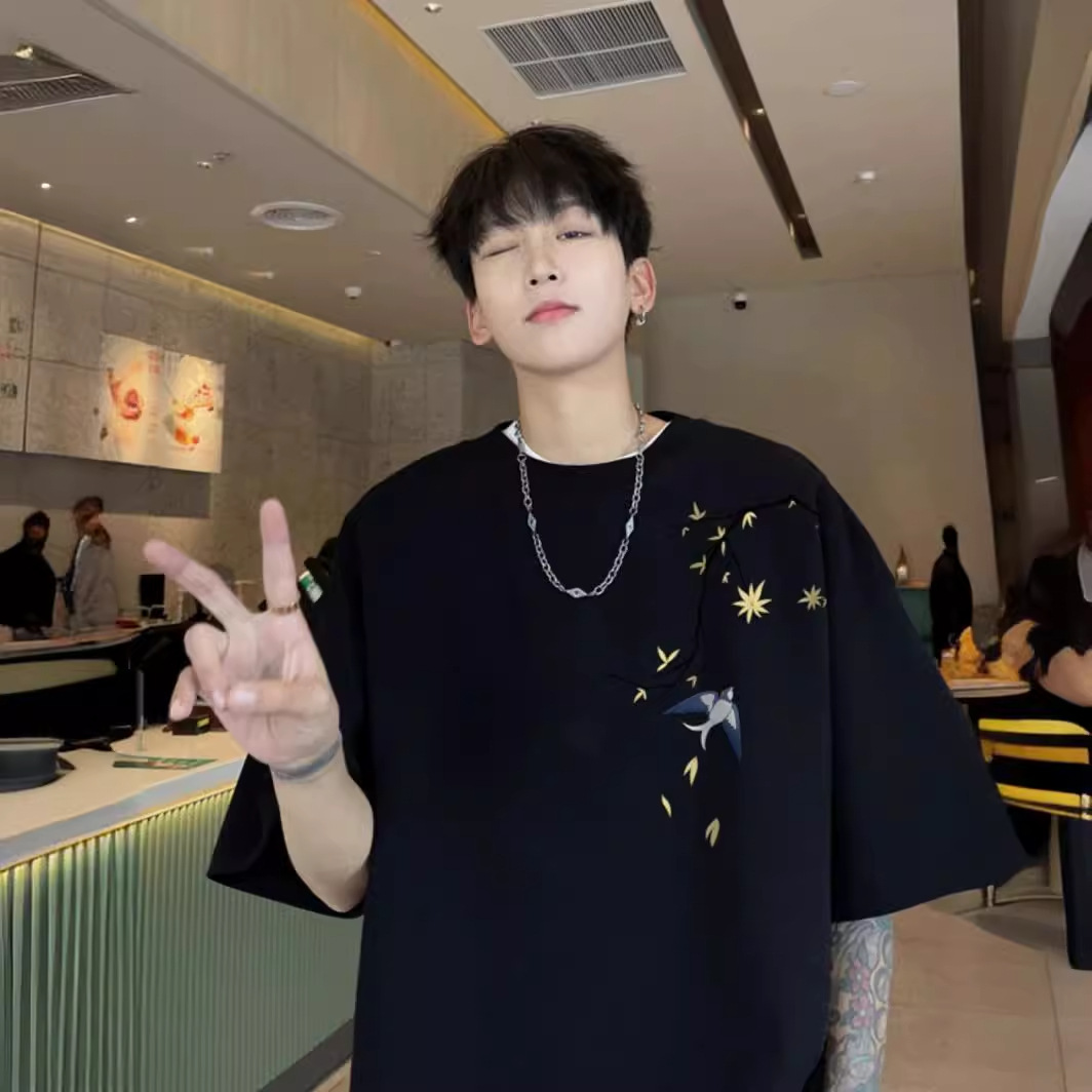 新中式国风印花短袖t恤男夏季新款重磅纯棉oversize宽松半袖体恤