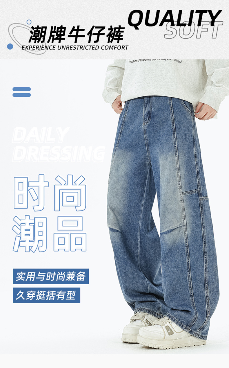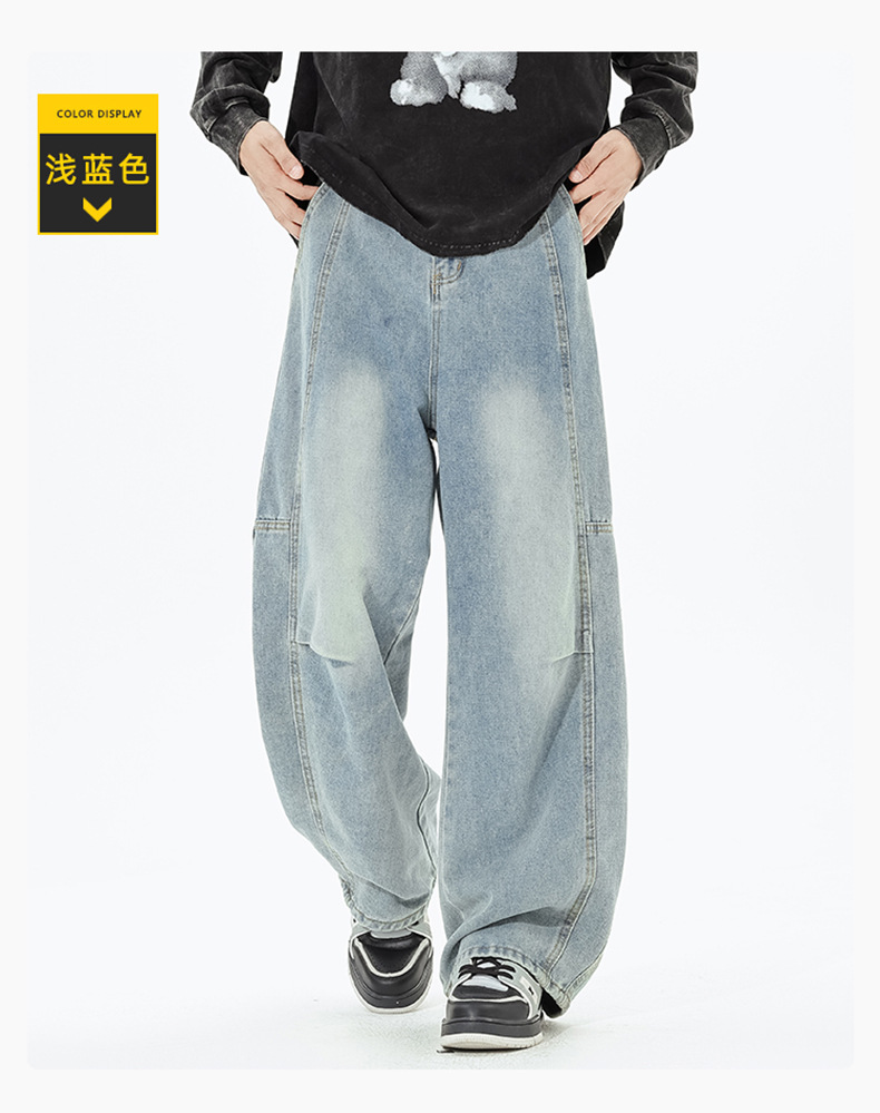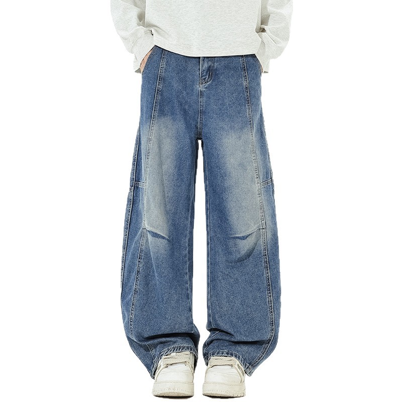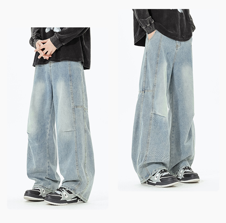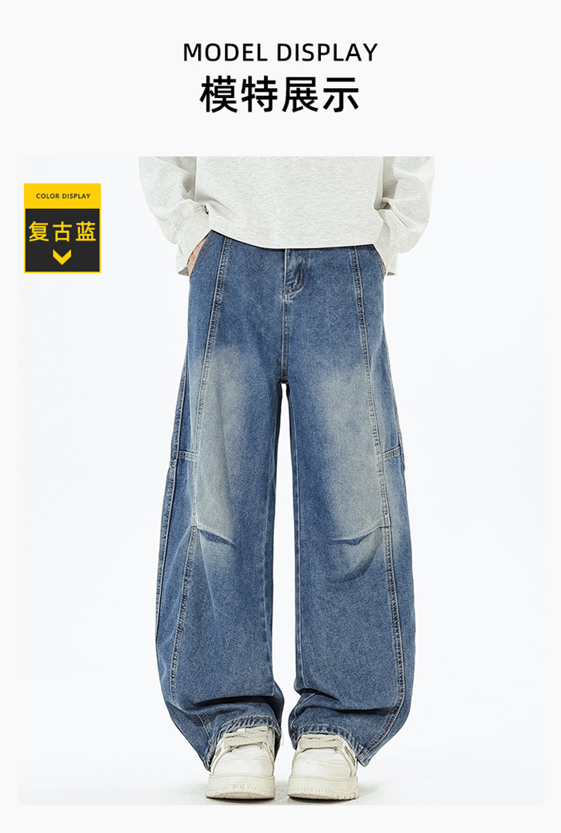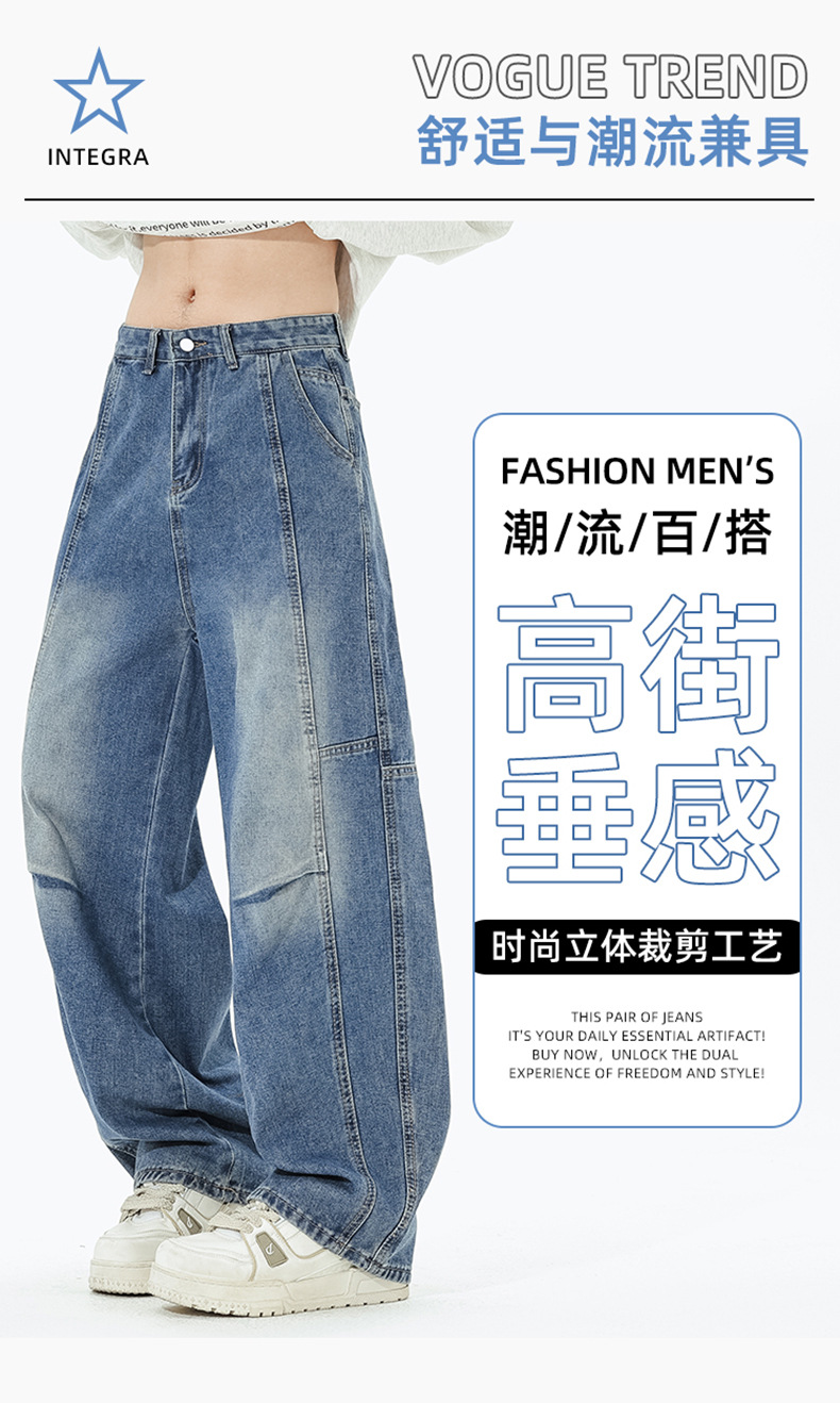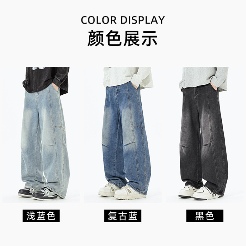 美式复古牛仔裤男秋冬新款港风设计感时尚百搭宽松垂感阔腿弯刀裤