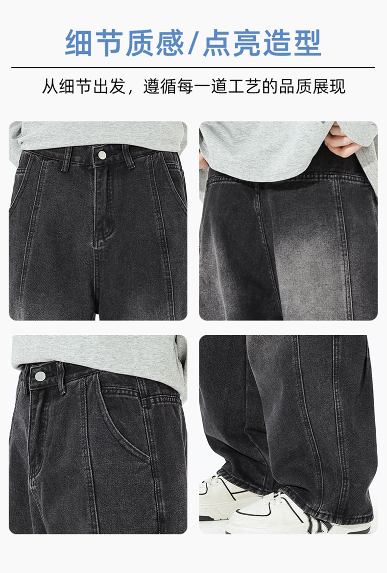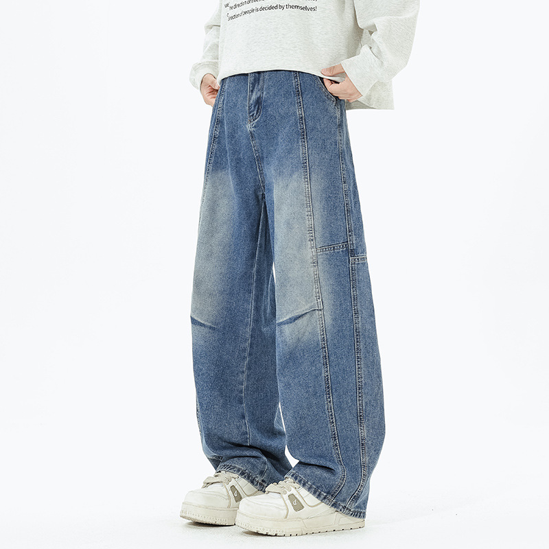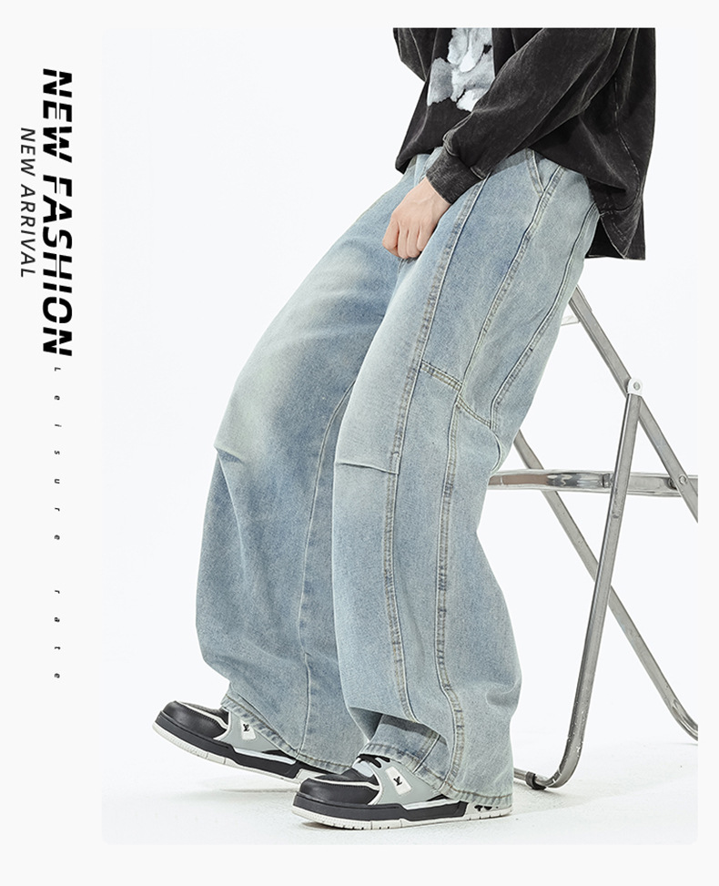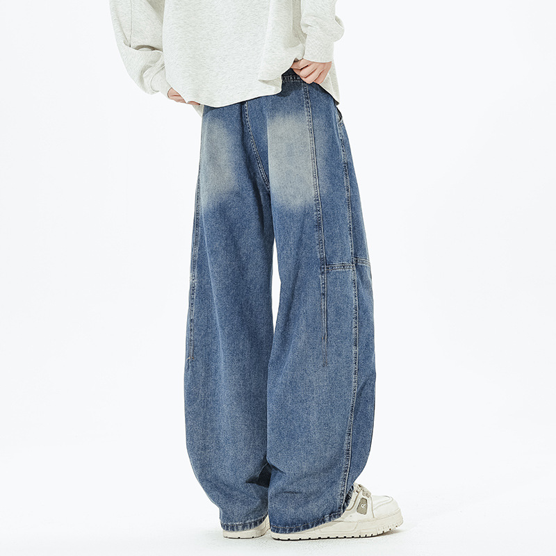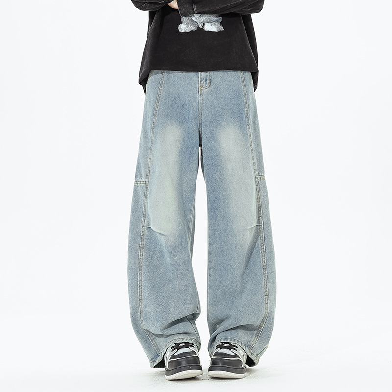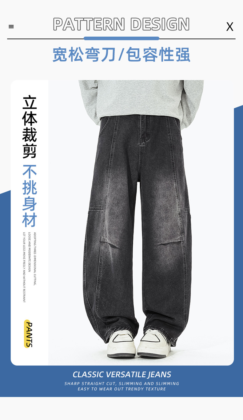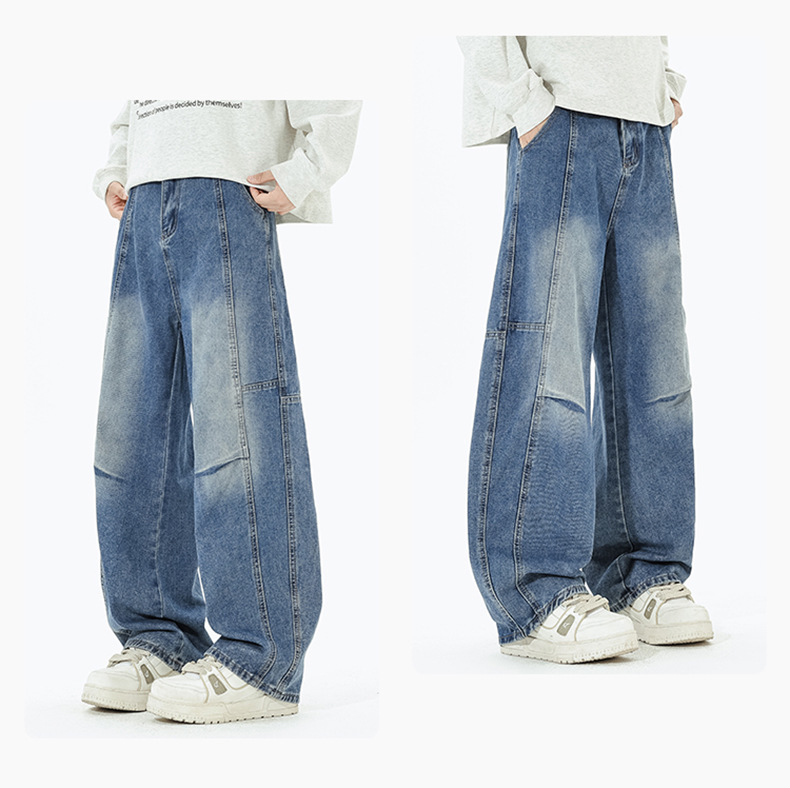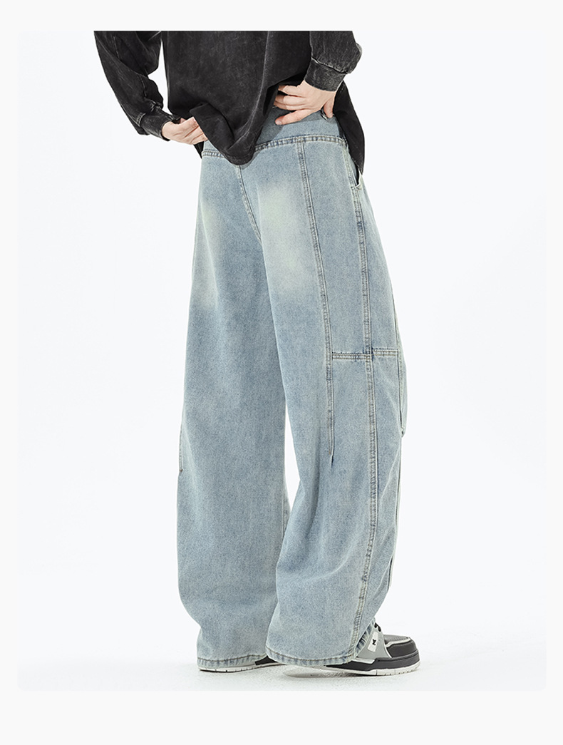 美式复古牛仔裤男秋冬新款港风设计感时尚百搭宽松垂感阔腿弯刀裤