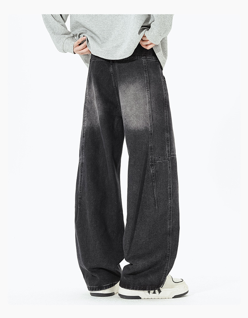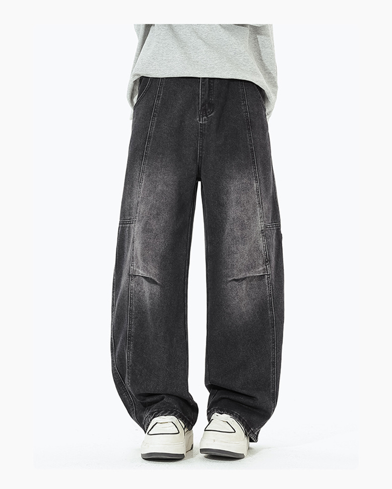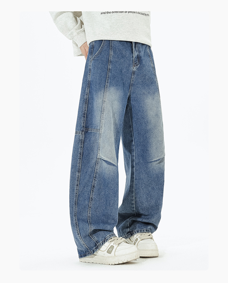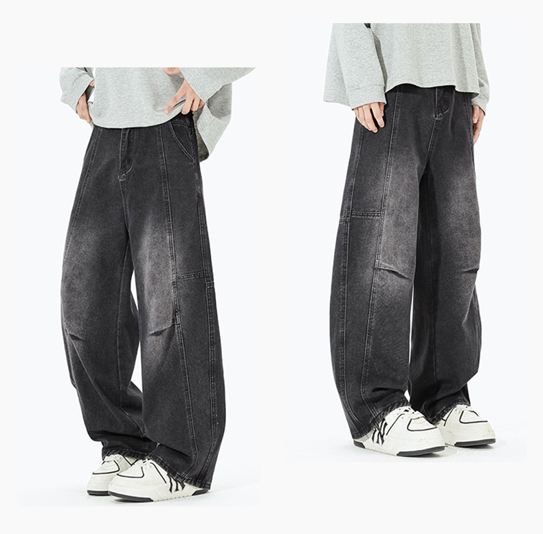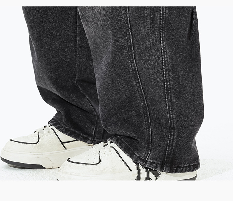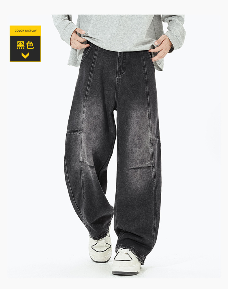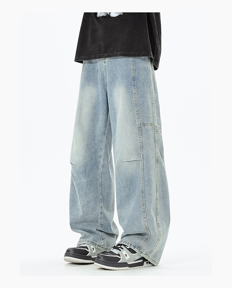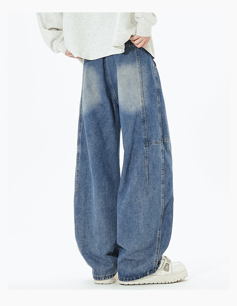 美式复古牛仔裤男秋冬新款港风设计感时尚百搭宽松垂感阔腿弯刀裤