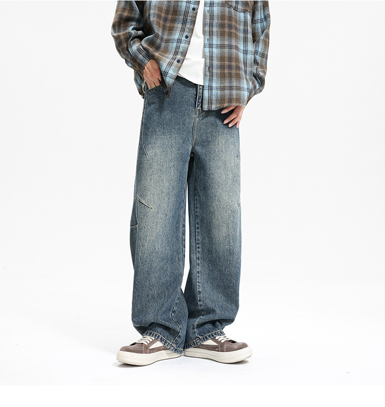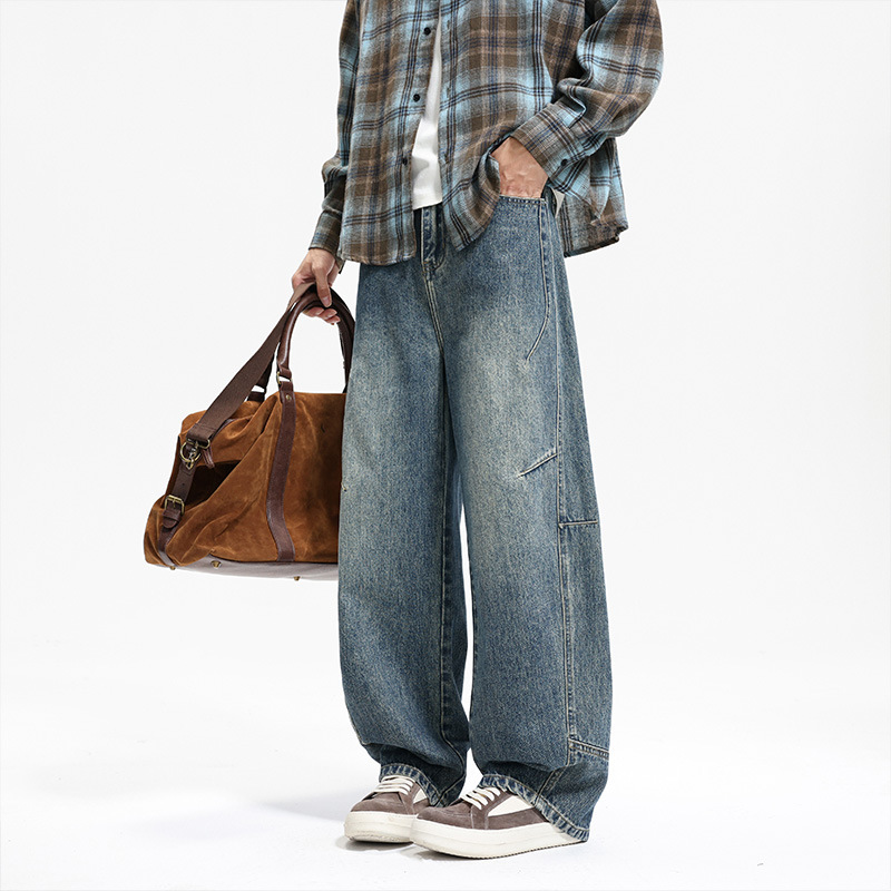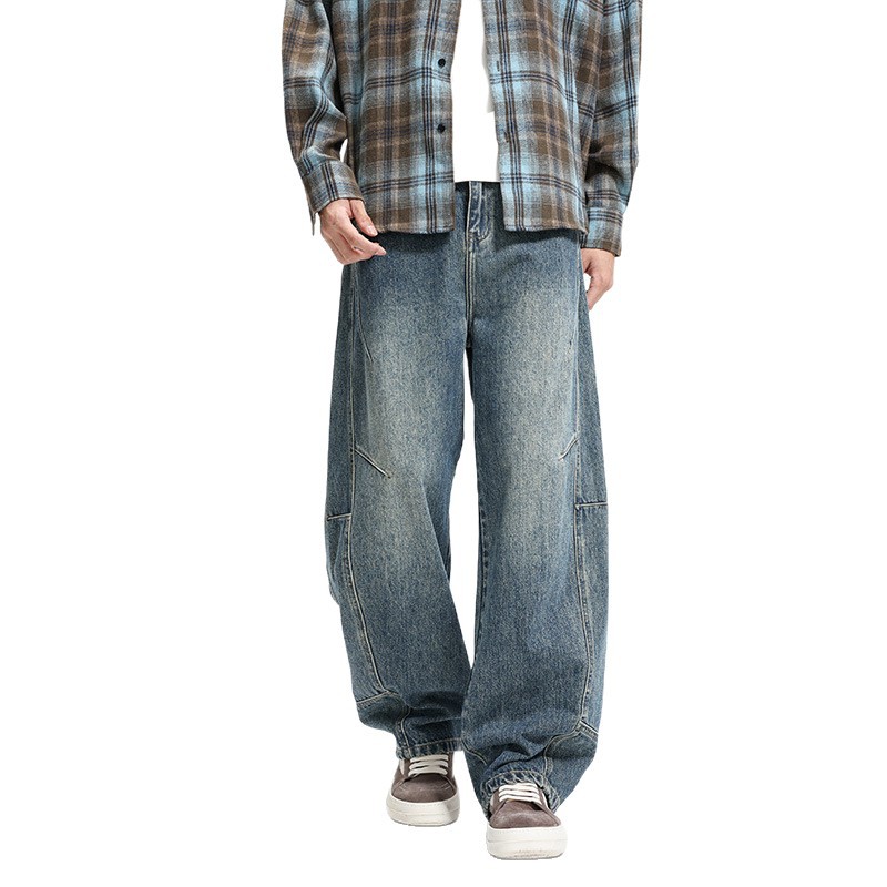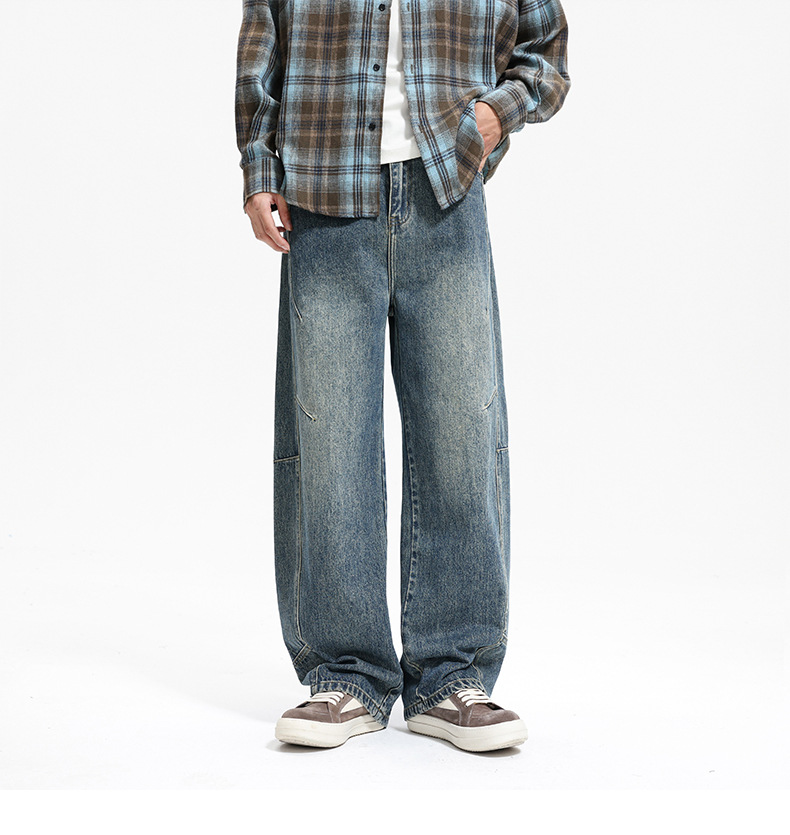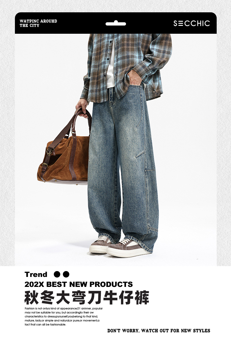 保罗弯刀牛仔裤男款秋季帅气潮牌直筒裤春秋款宽松耐磨百搭阔