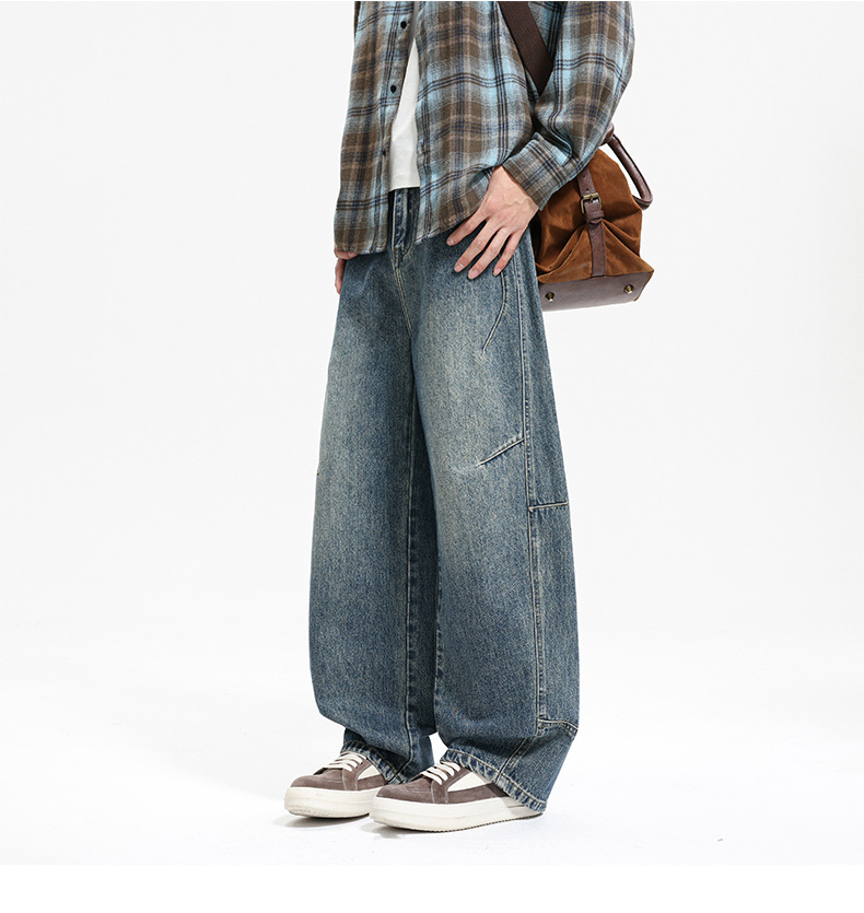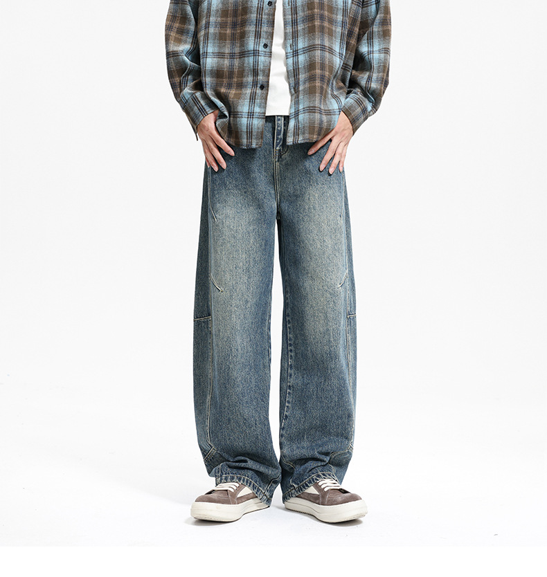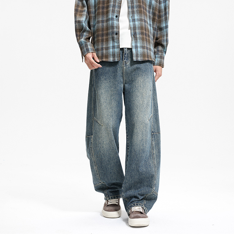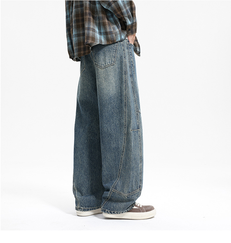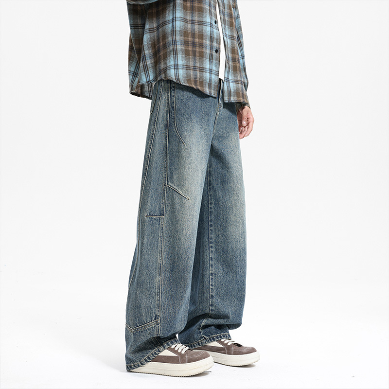 保罗弯刀牛仔裤男款秋季帅气潮牌直筒裤春秋款宽松耐磨百搭阔