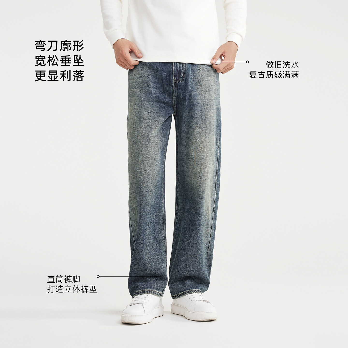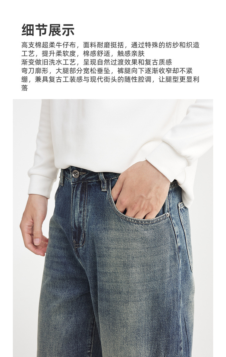男装渐变水洗弯刀裤2025冬季新款复古休闲男士牛仔裤97331.