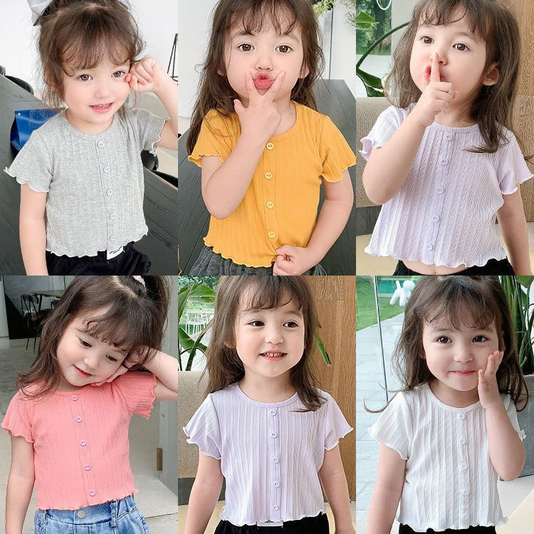 女童纯棉洋气纯色T恤2025夏装新款女孩宝宝短袖百搭打底衫上衣