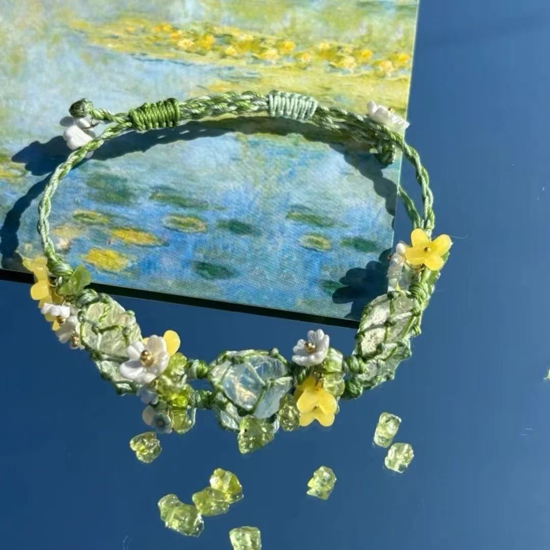 Macrame手工编织手绳合成白水晶蛋白原石编织小众森系清新手链