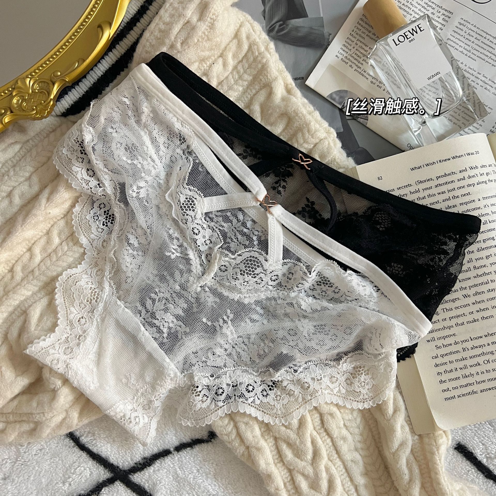 爆款法式缎面纯欲镂空蕾丝内裤女纯棉裆透气舒适性感少女三角裤头