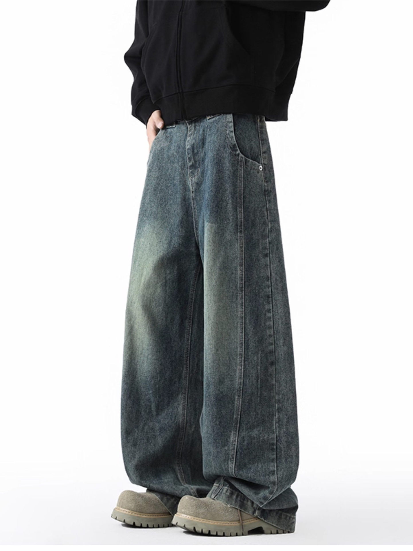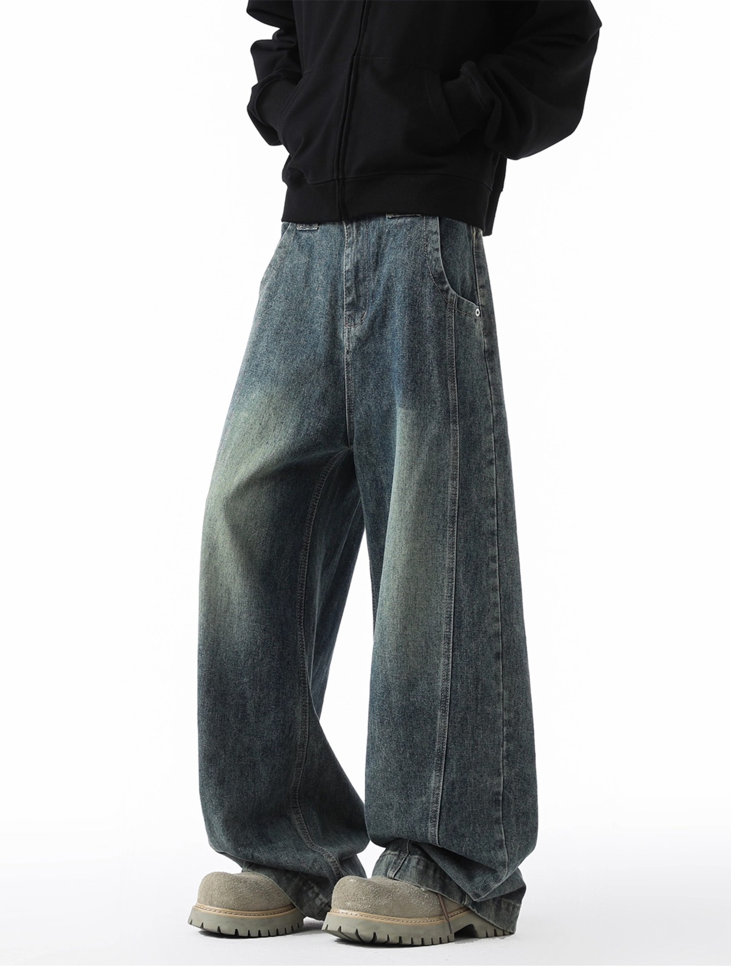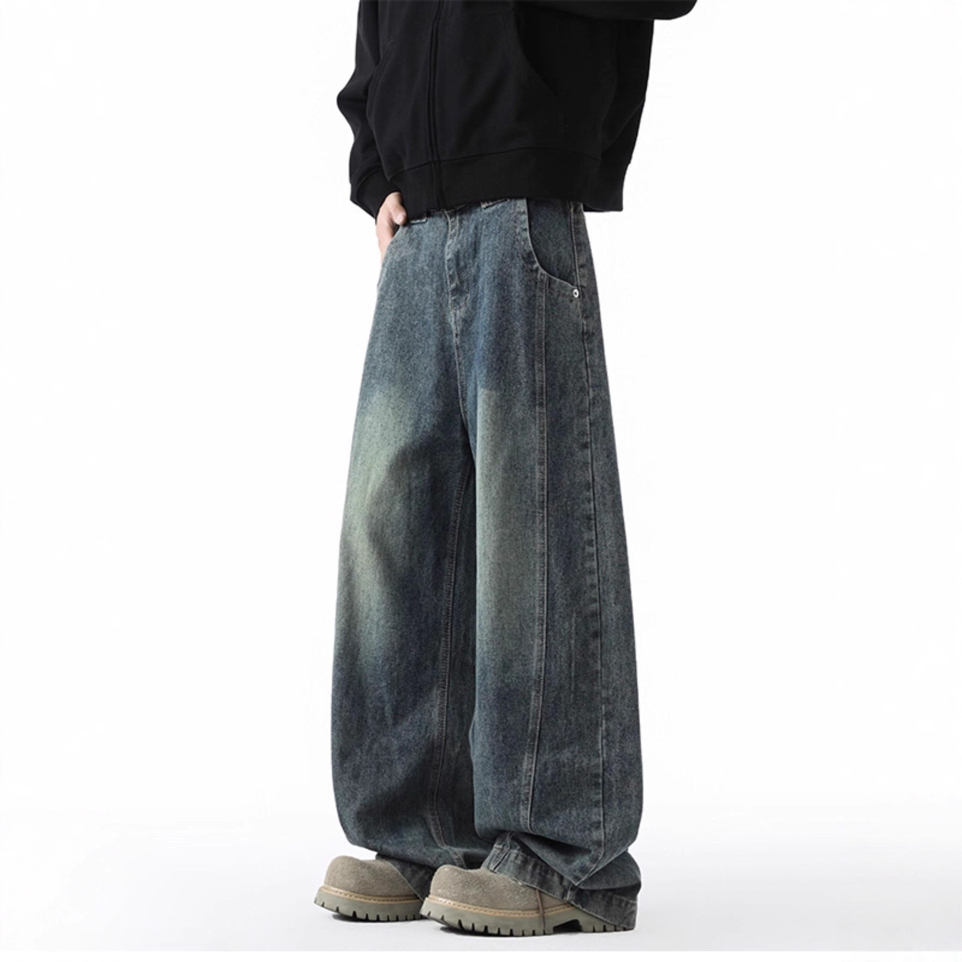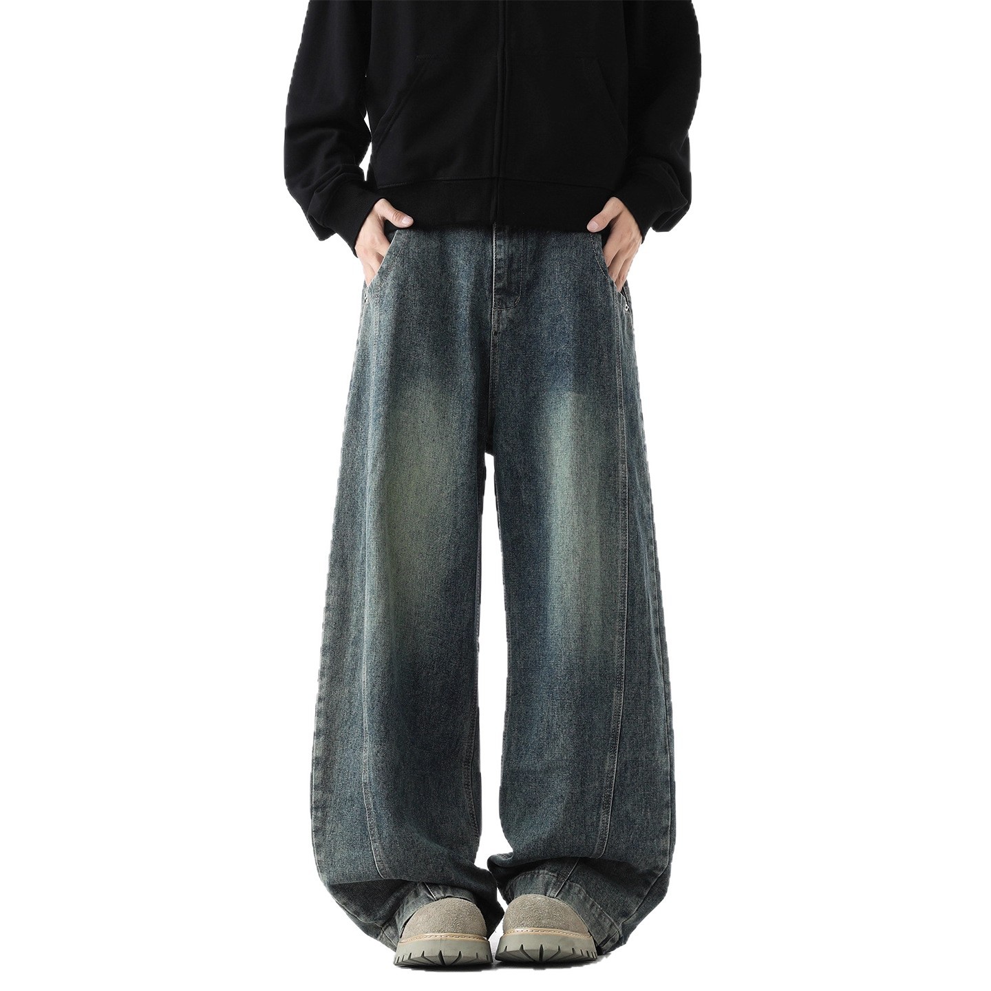 高街阔腿牛仔裤男秋冬款美式宽松直筒垂坠感拖地裤子男生水洗复古