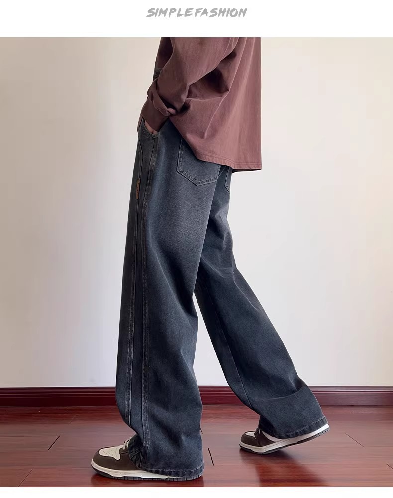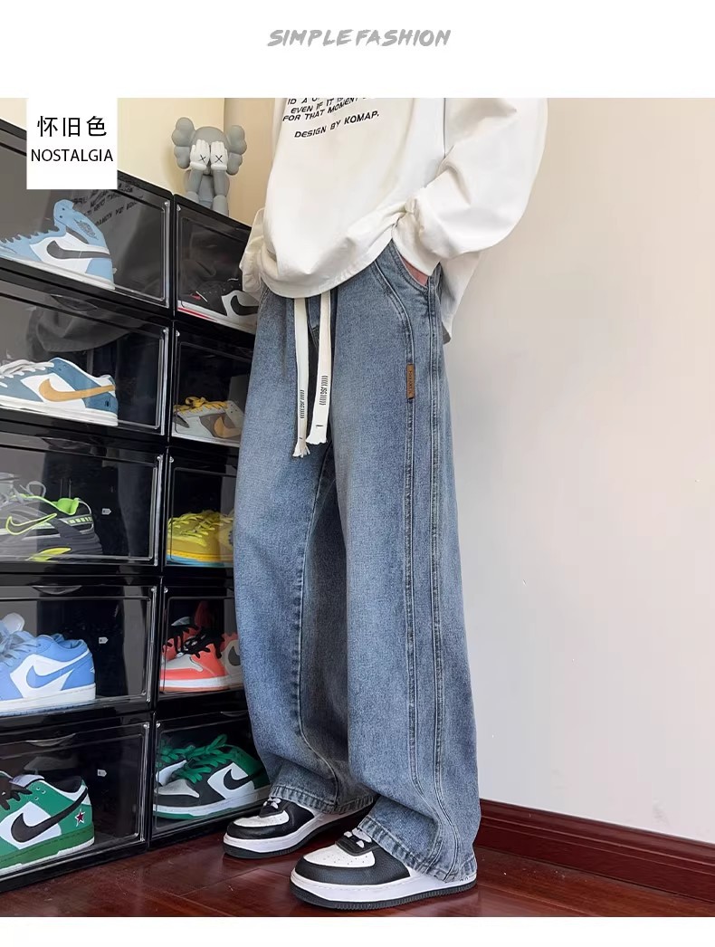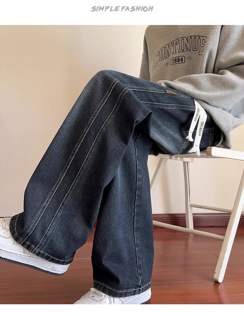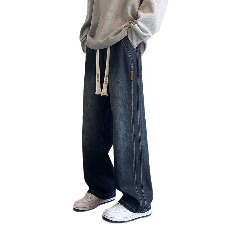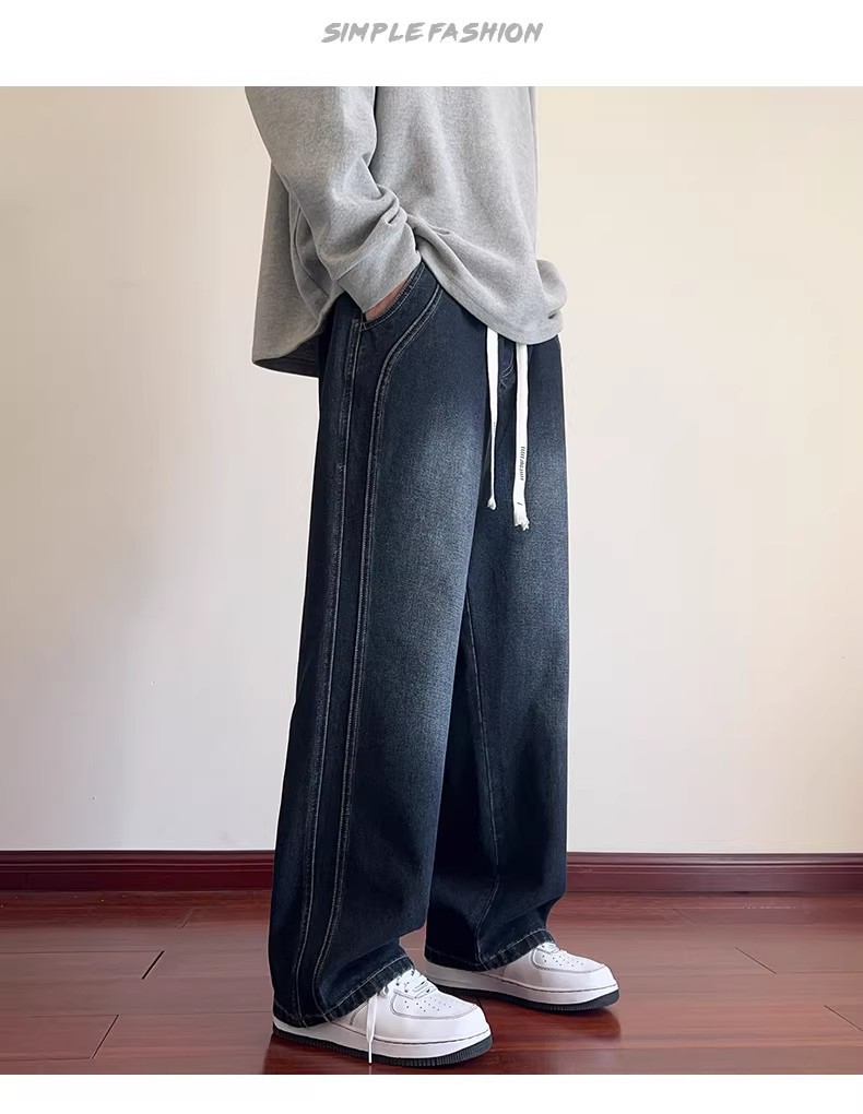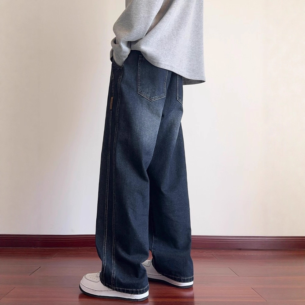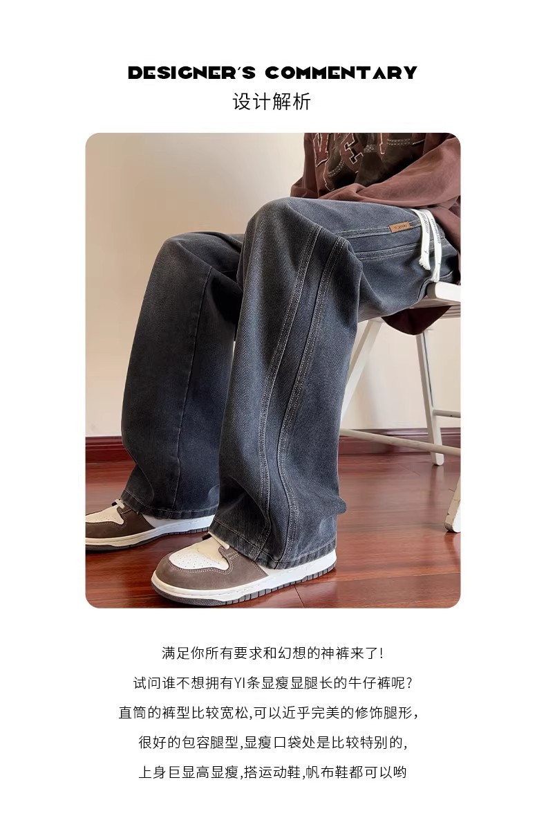 复古牛仔裤男士春秋季新款宽松直筒休闲长裤男款潮流美式高街裤子