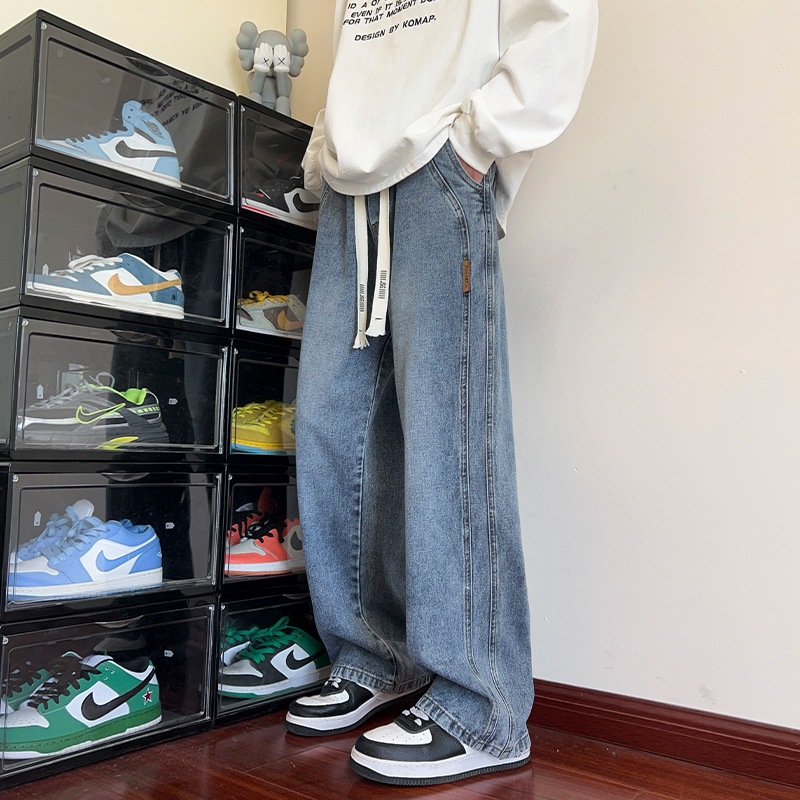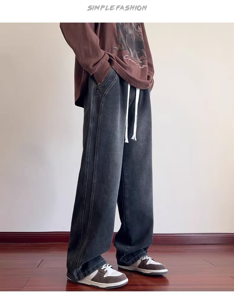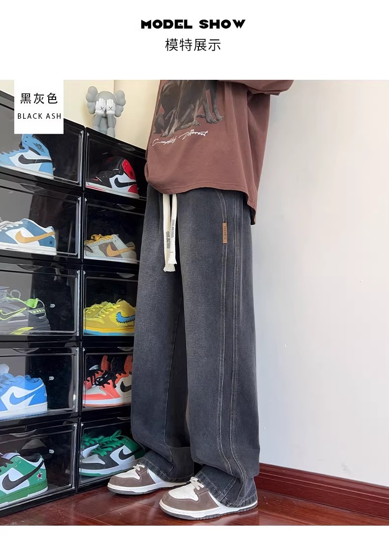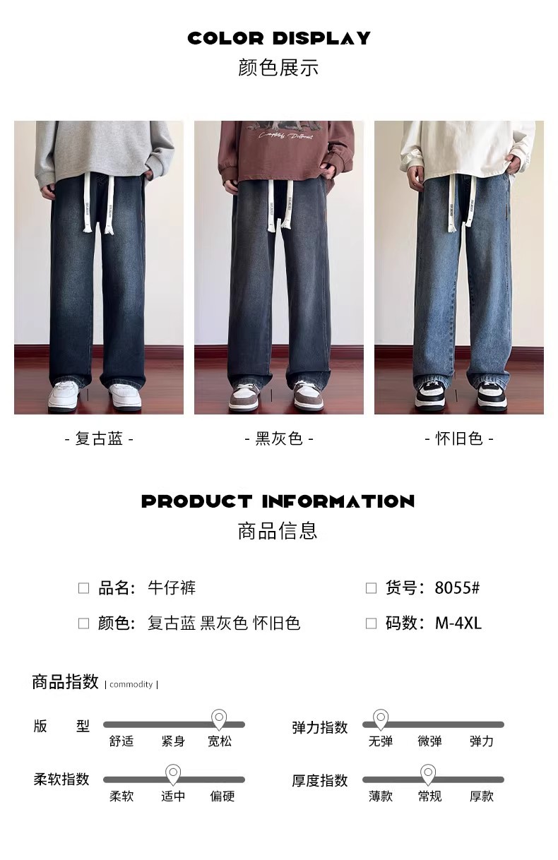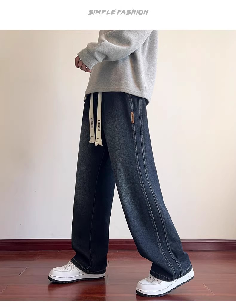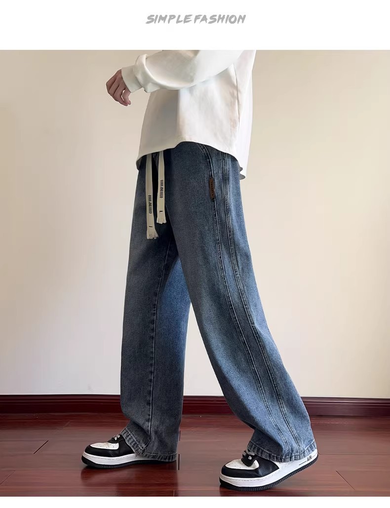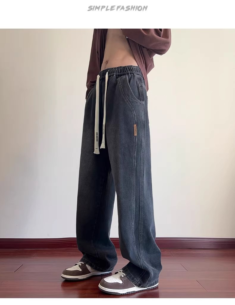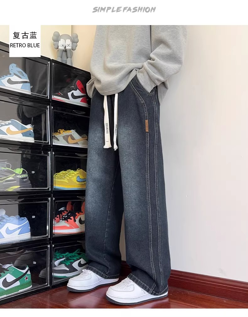 复古牛仔裤男士春秋季新款宽松直筒休闲长裤男款潮流美式高街裤子