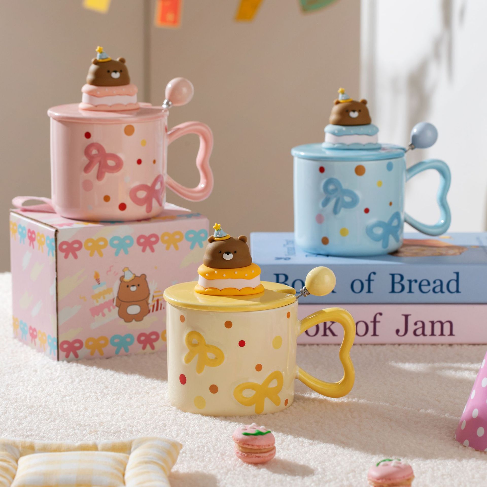卡通小熊陶瓷杯带盖勺高颜值情侣水杯生日伴手礼杯子下午早餐牛奶