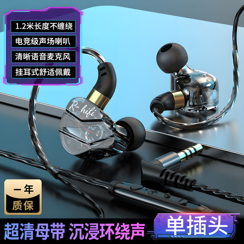 双核双动圈入耳式线控耳机适用于3.5mm圆孔有线耳机