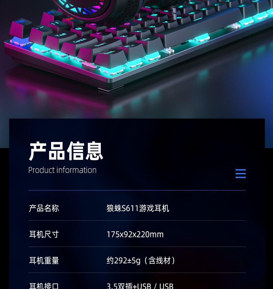 狼蛛S611电脑耳机头戴式有线电竞游戏台式笔记本手机平板带麦克风