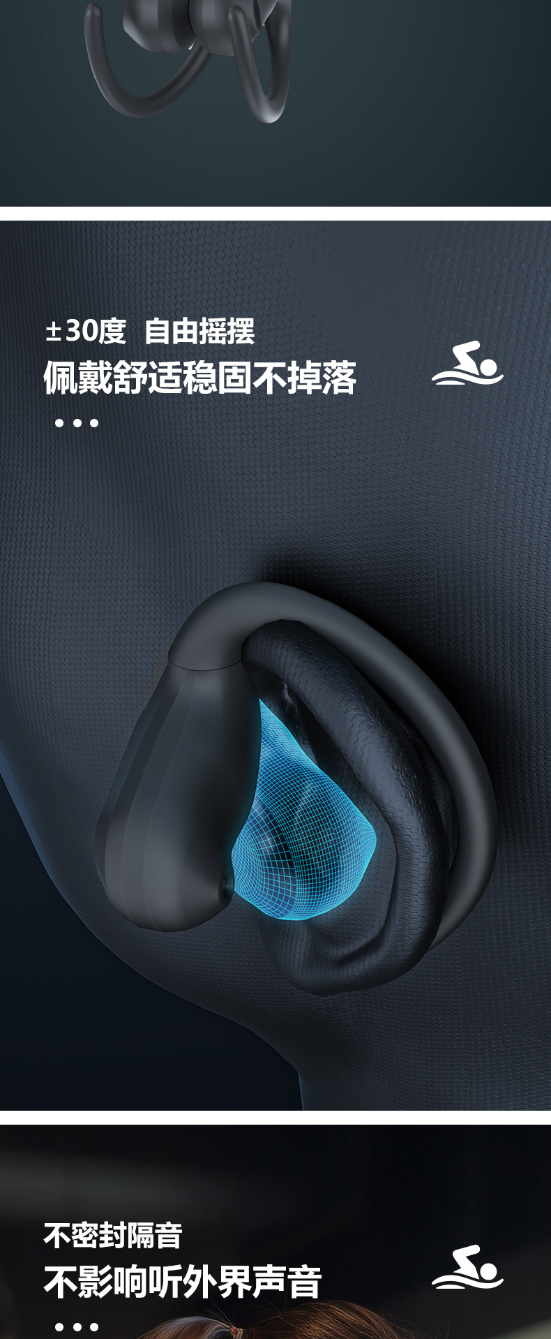 通数显单左耳挂蓝牙耳机超长续航按键版OWS不入耳传导运动无线