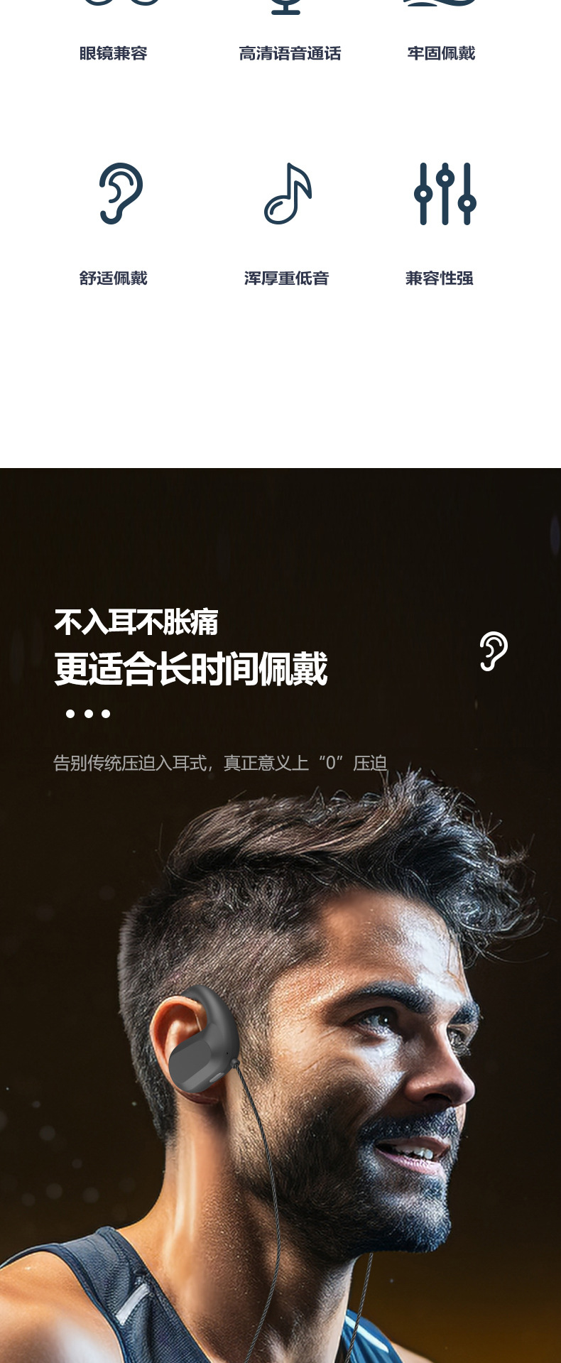气传导无线耳机蓝牙5.3不入耳超长待机挂耳式单边立体声蓝牙耳机