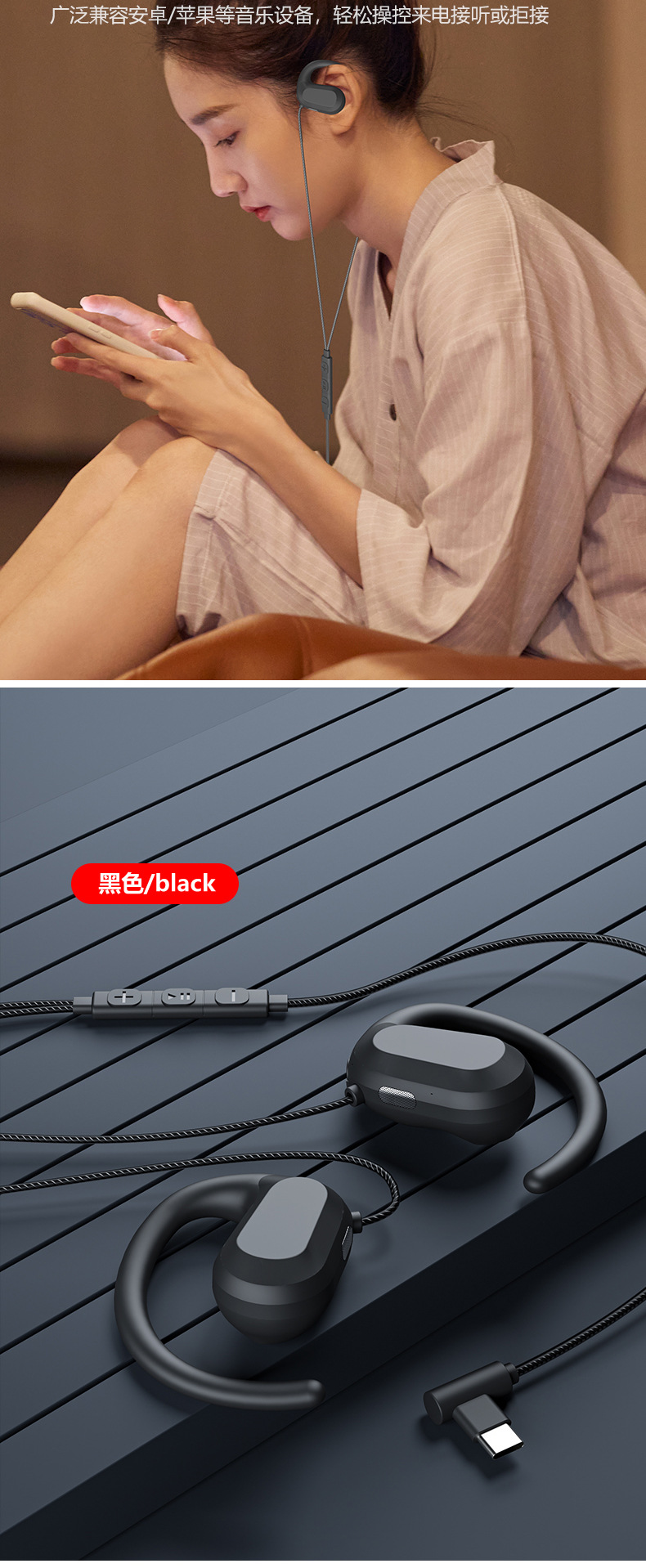 黑色H20接口TYPEC立体声