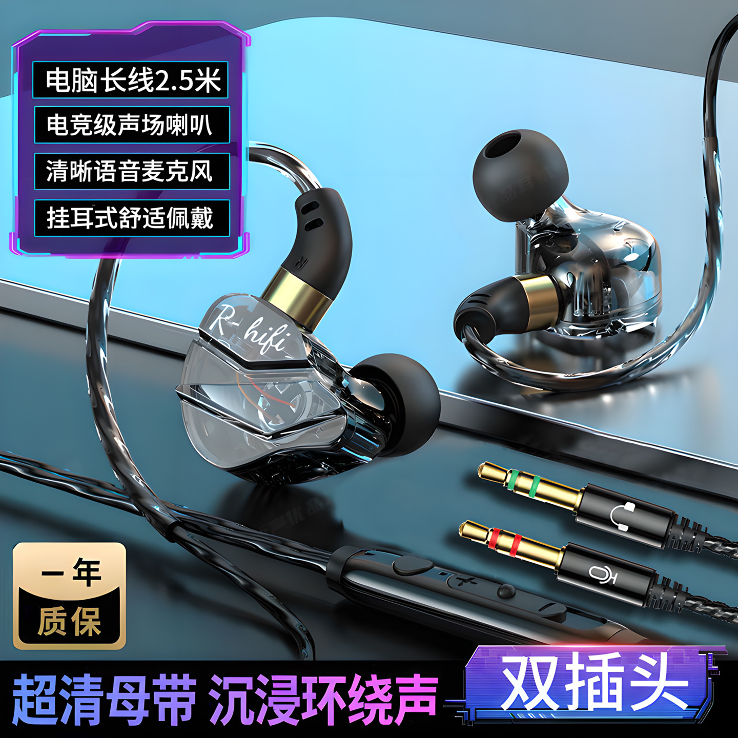 官方标配-电脑版【3.5mm双插头】2.5米台式电脑用